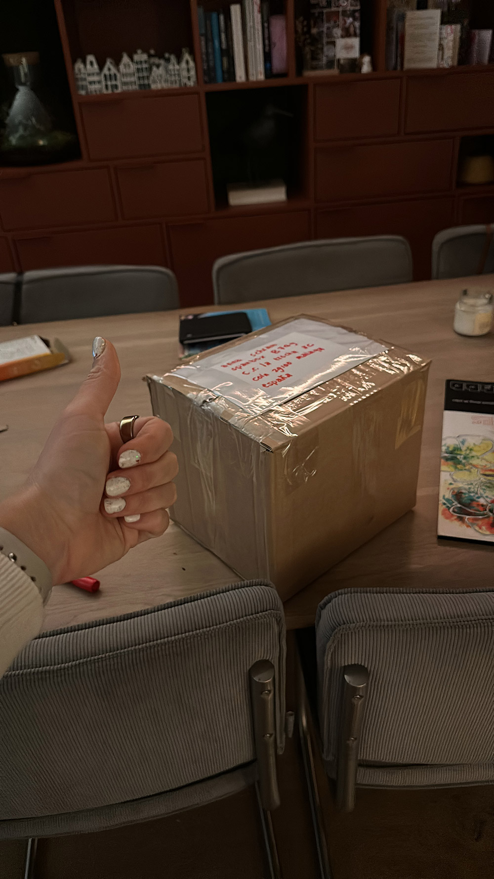Ik stuur een pakket met spullen naar Spanje voor de retreat! Die begint volgende week en dat scheelt weer slepen.