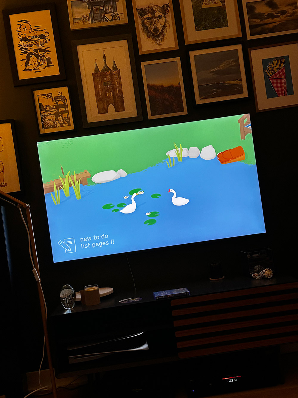 Willem en ik spelen Goose Game, een heel geinig spelletje waarin je een gans bent en mensen moet irriteren.