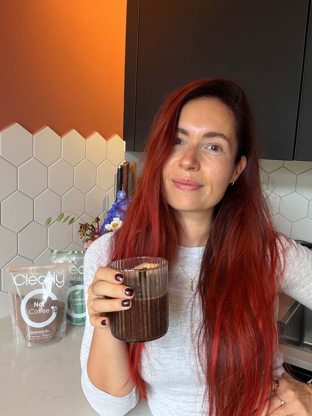 Sinds een tijdje ben ik aan het minderen met koffie en sinds enkele weken zelfs helemaal gestopt. Dit is omdat ik tijdens mijn yoga-opleiding op Bali in december geen koffie mag drinken en ik toch wel zo’n zes bakkies per dag achterover sloeg… Ik heb eerst afgebouwd tot ik nog maar één per dag nam, en nu neem ik alleen nog maar décaf koffie óf Clearly not Coffee. Dit ontdekte ik vorig jaar, het is een cacao/paddenstoelendrank en dat klinkt heel goor, maar dat is het niet! De paddenstoelen proef je niet, maar ze zijn wél goed voor je. Hier zit wel alsnog een klein beetje cafeine in (ongeveer een derde van een gewone kop koffie) dus niet iets waar ik er zes per dag van neem, maar het is voor mij een hele fijne vervanger als ik echt zin heb in dat ‘koffie moment’, maar dan zonder koffie. Thee doet de truc voor mij nog niet…