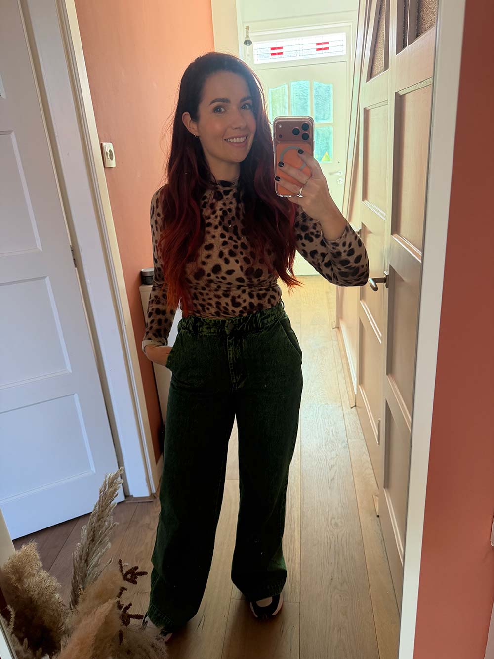 Ik heb hem ook in een andere kleur meegenomen. Het was precies wat ik zocht. Baggy, wijd, maar wel lekker hoog en een beetje strakker rond de taille en billen.