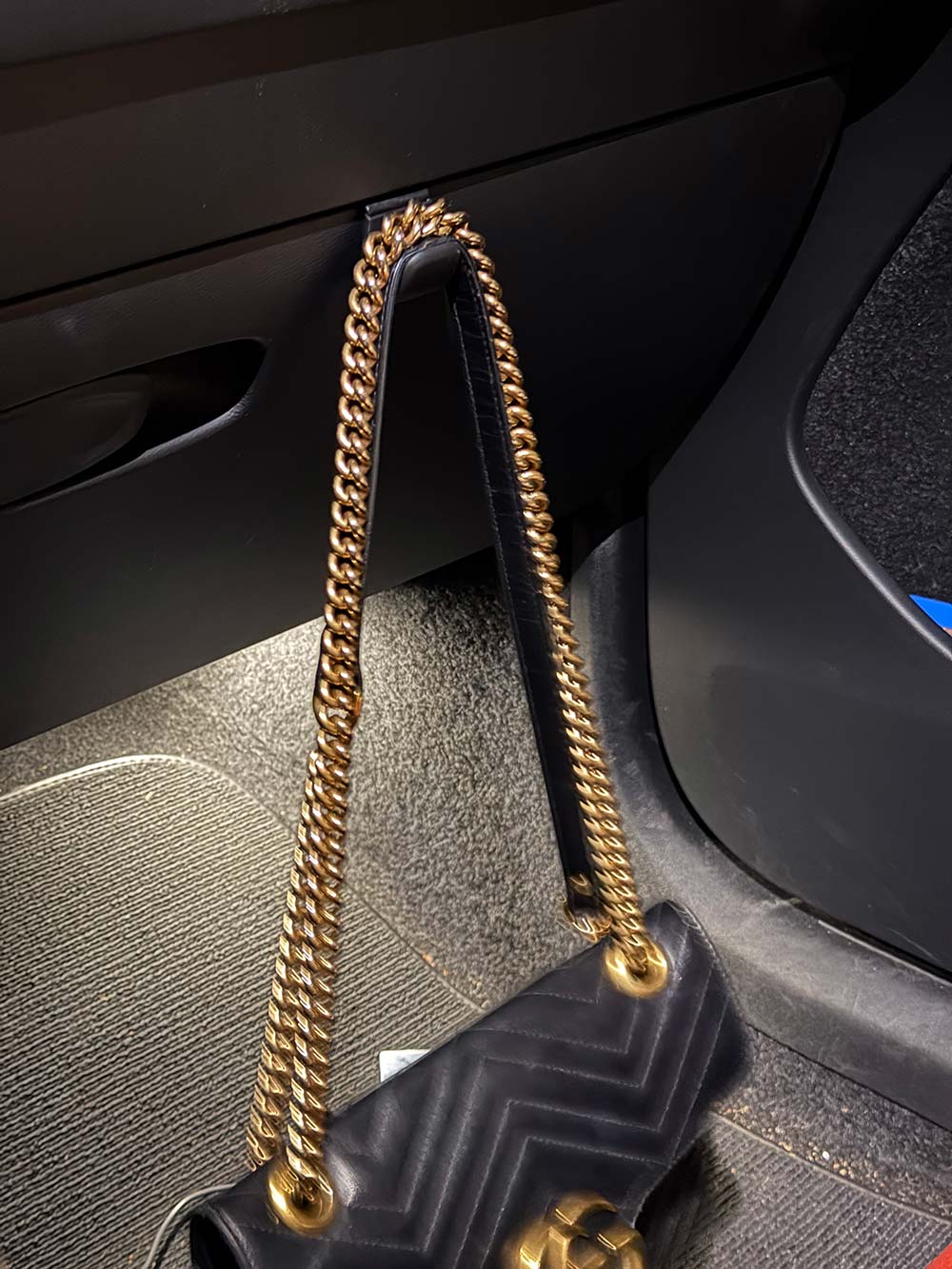 Sebastiaan vertelde me over een geheime hack in mijn Volvo: een haakje aan de binnenkant van het dashboardkastdeurtje die je kan uitklappen om je tas aan te hangen. Ik heb deze auto al vijf jaar of zo, en had geen idee.