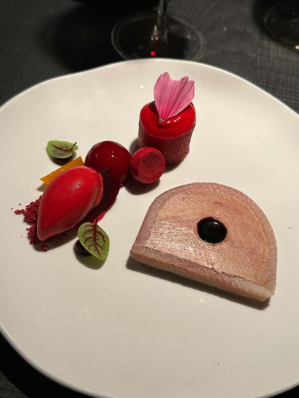 Zeetong met eekhoorntjesbrood. Mooie alcoholvrije begeleiding ook erbij, erg lekker!