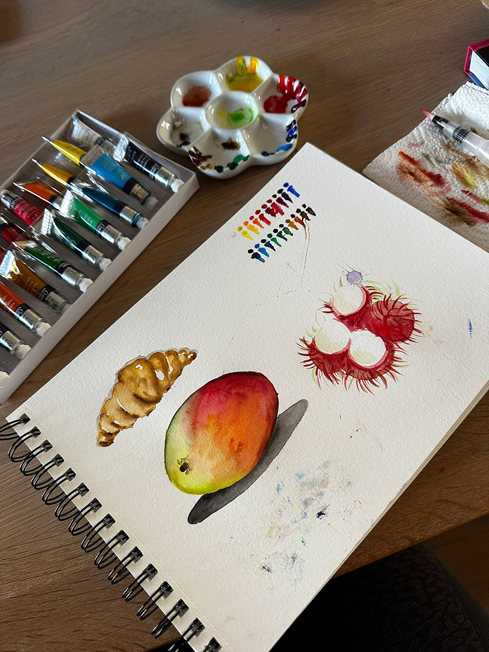 Ik test mijn nieuwe waterverf (ik kocht tubes).