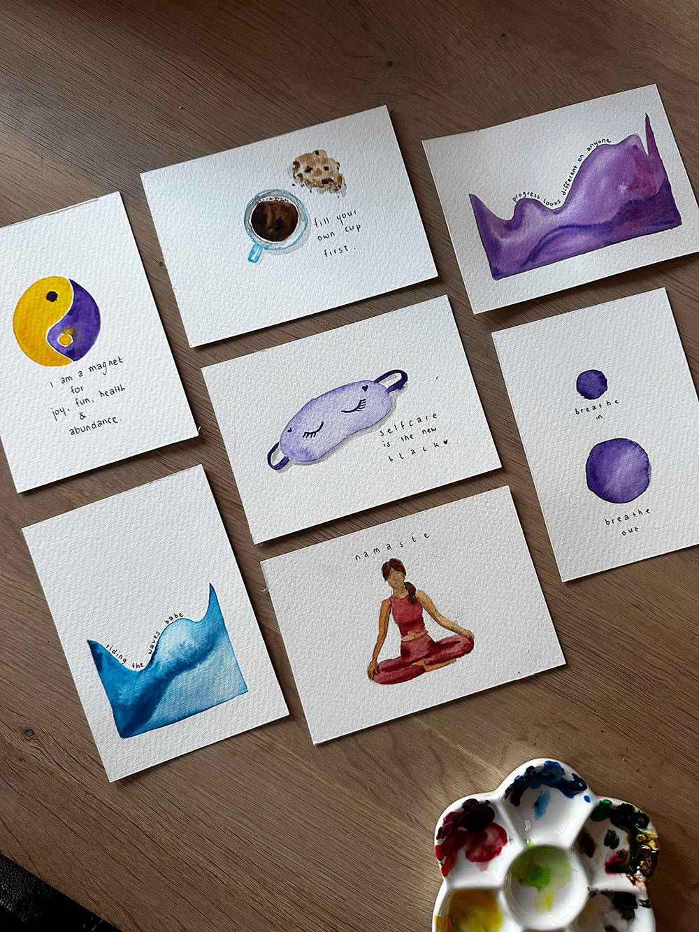 Ik maakte kaartjes voor de deelnemers van mijn Cynthia.nl Selfcare Retreat die komende week is.