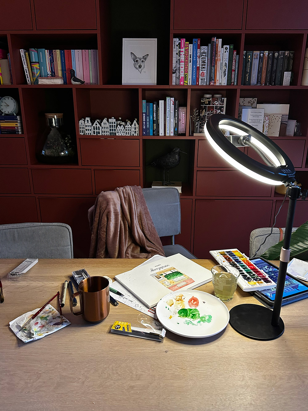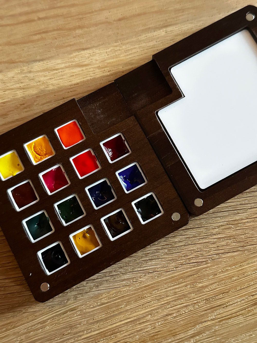 Ik kocht dit lege reispaletje op Amazon en vulde hem met waterverf uit die tubetjes.