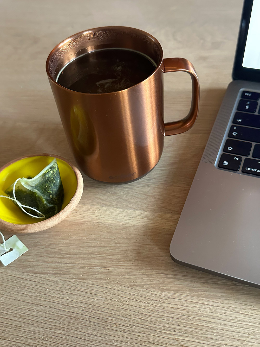 Ik kreeg een Ember mok en wow, dit is geweldig. Dit is een kop met ‘verwarming’ erin. Hij houdt mijn drankje 1,5 uur op de temperatuur die ik kies. Ideaal voor thee, want ik doe altijd heel lang over een kop thee en dan is ‘ie altijd zo snel koud. Ik wist niet dat ik dit nodig had, haha.