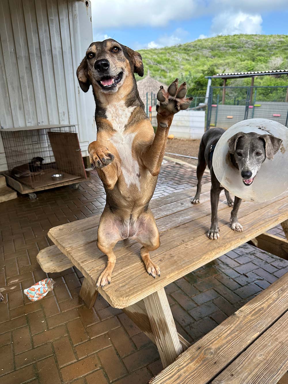 Knuffelen. En verder waren we druk bezig met hokken schoonmaken. Al die lieve hondjes, ik zou ze allemaal wel mee willen nemen.