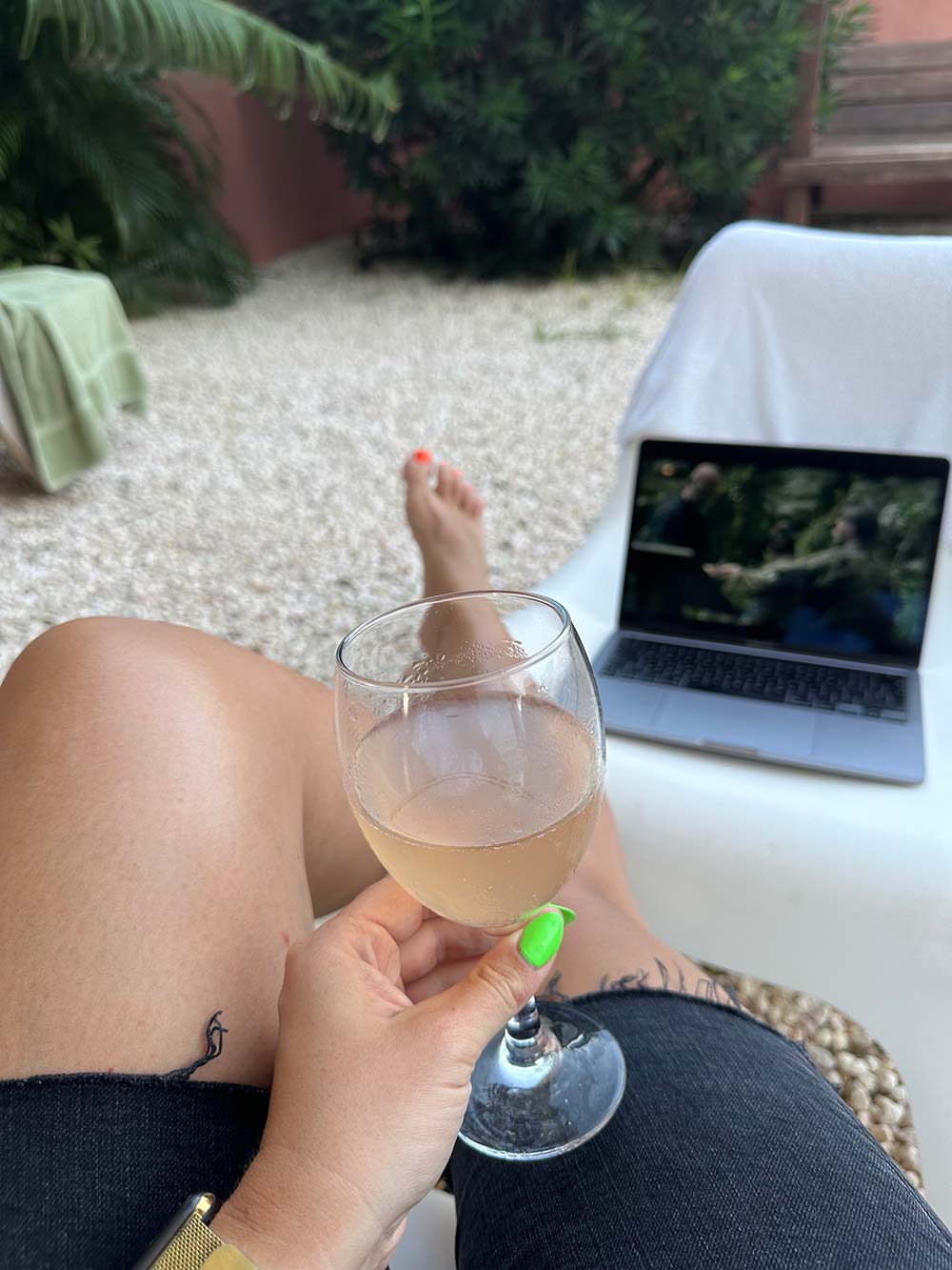 ik vind het heerlijk om hier te zijn en kom ook erg tot rust. In de middag ben ik allang weer vergeten dat ik in de ochtend gewerkt heb, haha, en dan voelt het ook echt als vakantie. Lekker is dat, die combi van werken en chillen. En ik ben in de ochtend dan ook echt in mega focus aan het werk. Precies de reden dat ik dit doe, echt heerlijk.