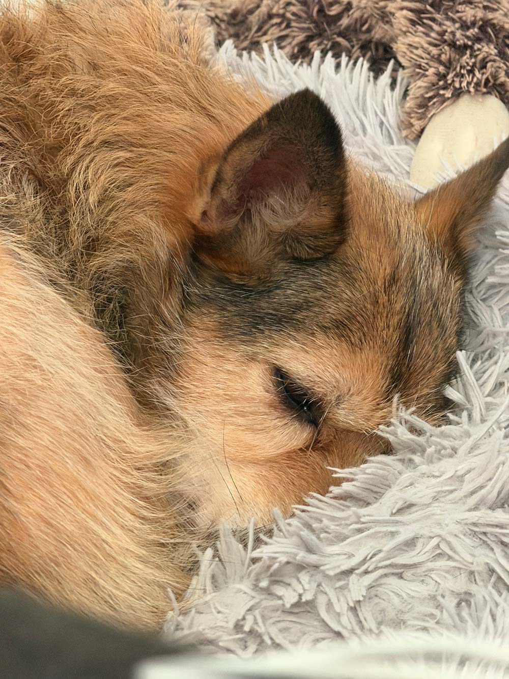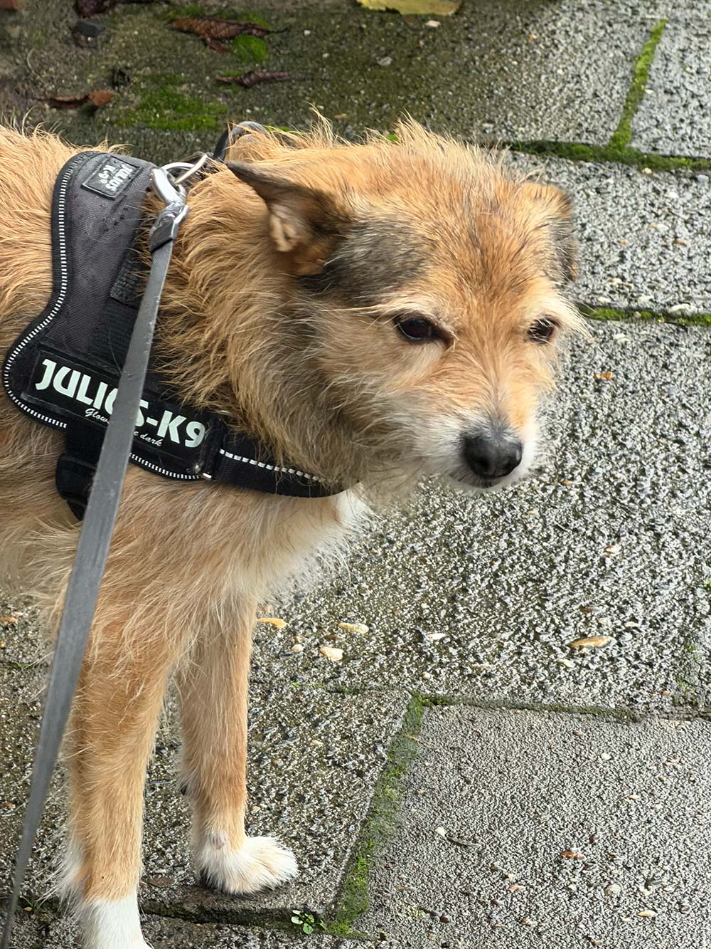Kees is niet blij in de regen. Het blijkt ook dat ze griep heeft. Ze is al een paar dagen niet lekker en bij de dierenarts blijkt: koorts en darmproblemen. Ze krijgt er wat voor en knapt gelukkig snel weer op. Maar ze kijkt hier ZO zielig, haha.
