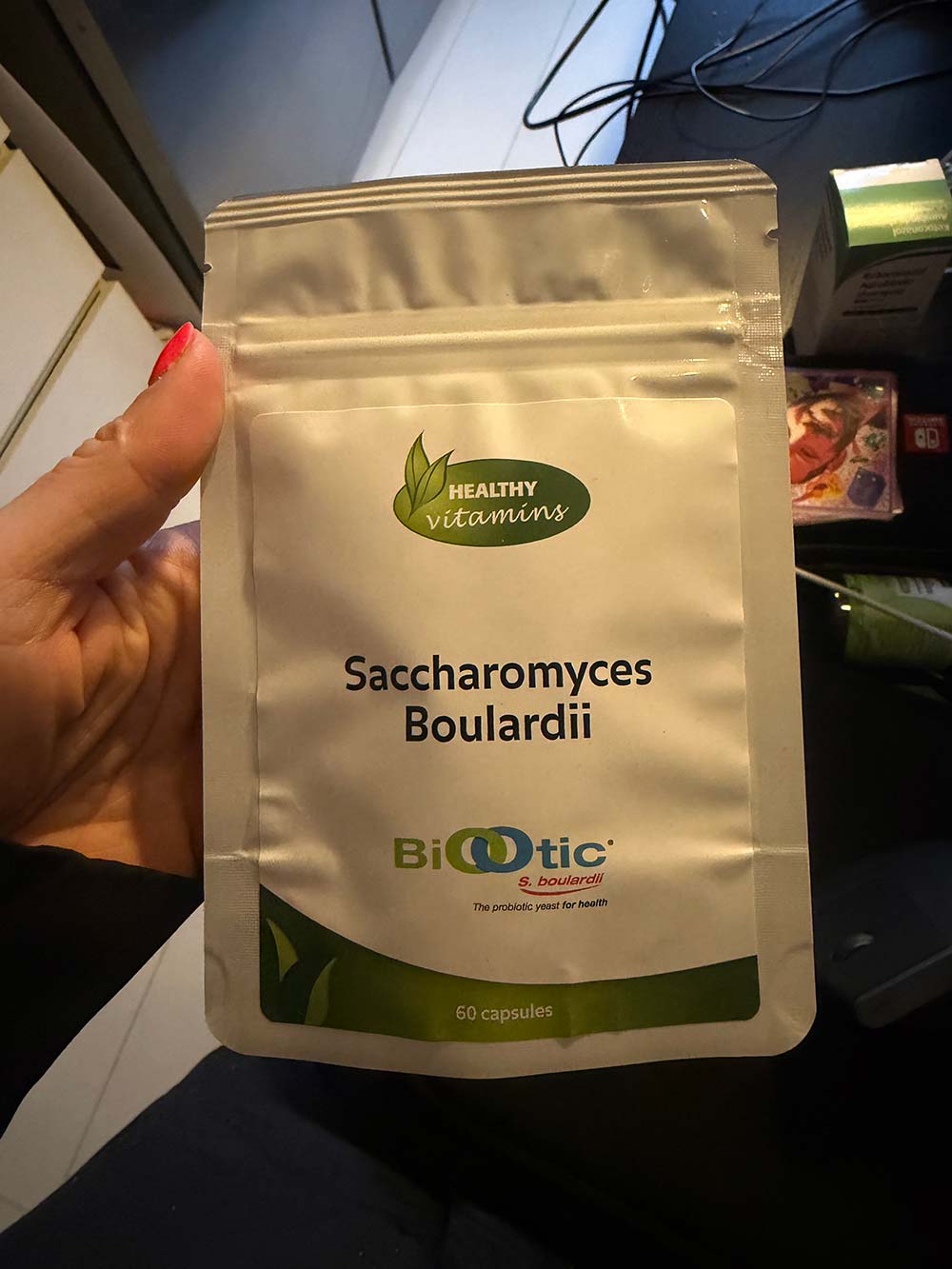 Ik ben me natuurlijk aan het voorbereiden op mijn vertrek naar Bali (ik vlieg donderdag) en ik neem alvast dit. Ik neem Saccharomyces boulardii, dat is een soort goede gist die je darmen beschermt tegen de beruchte ‘Bali belly’, vooral tegen E. coli, waar veel reizigers last van krijgen. Het helpt mijn darmbarrière sterker te houden en ongewenste bacteriën minder kans te geven. Geen garantie natuurlijk maar ik vind het een fijn idee om het alvast te nemen.