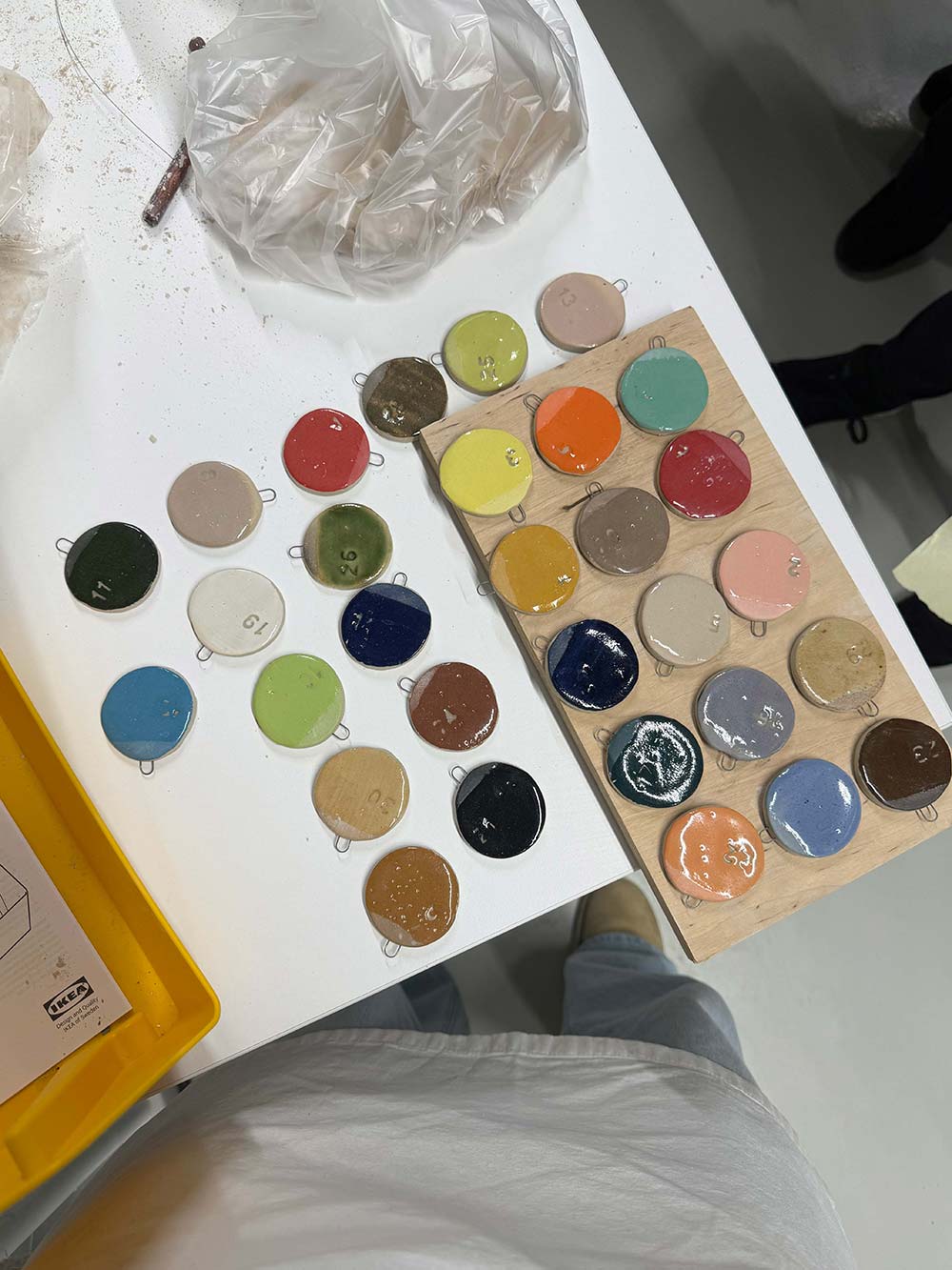 Even een foto van de kleuren engobe (een soort verf) dat we later in het proces op ons werk kunnen gaan gebruiken.