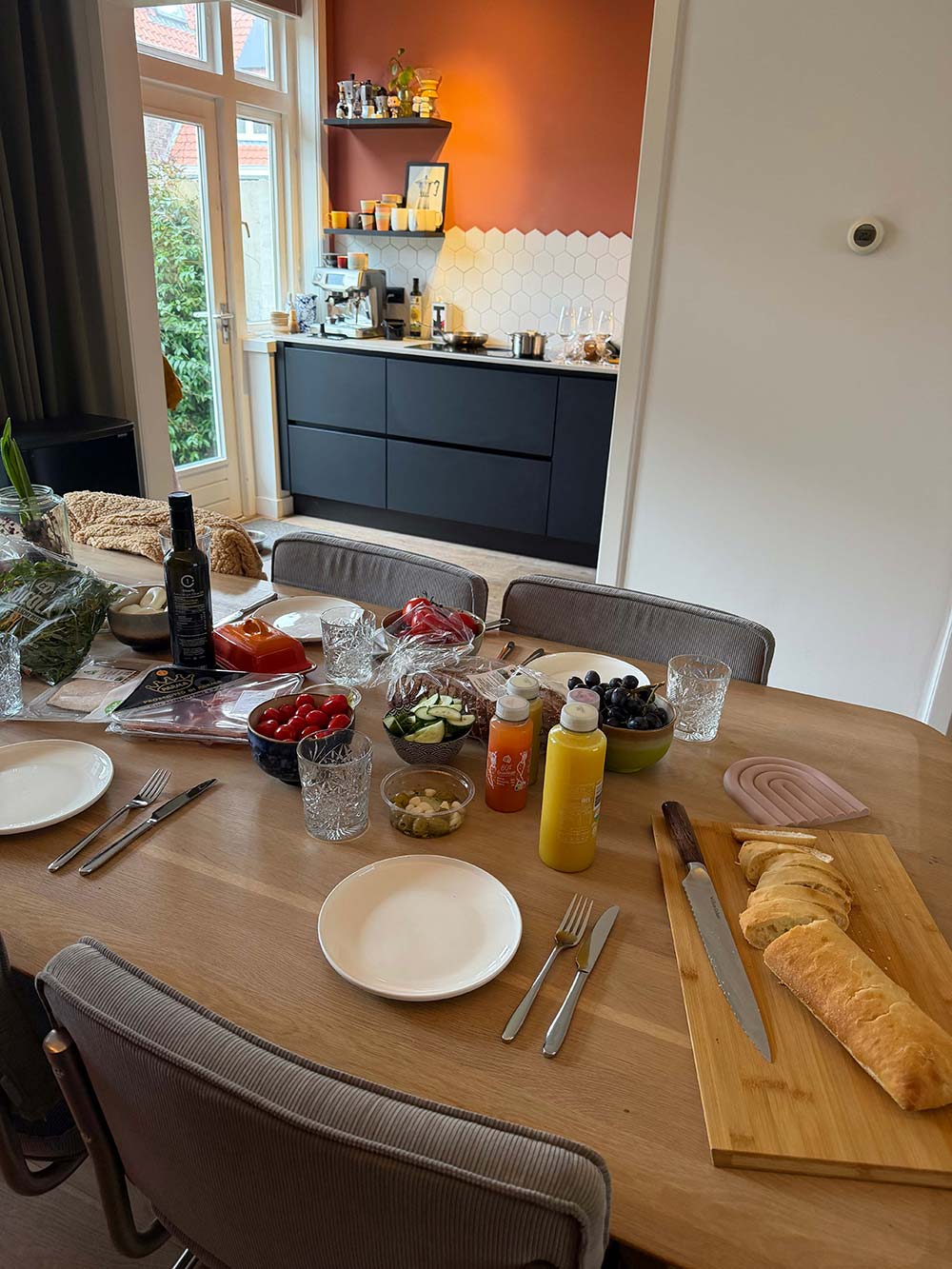 Uitgebreid thuis lunchen met Sebas, Eveline en de kinderen.