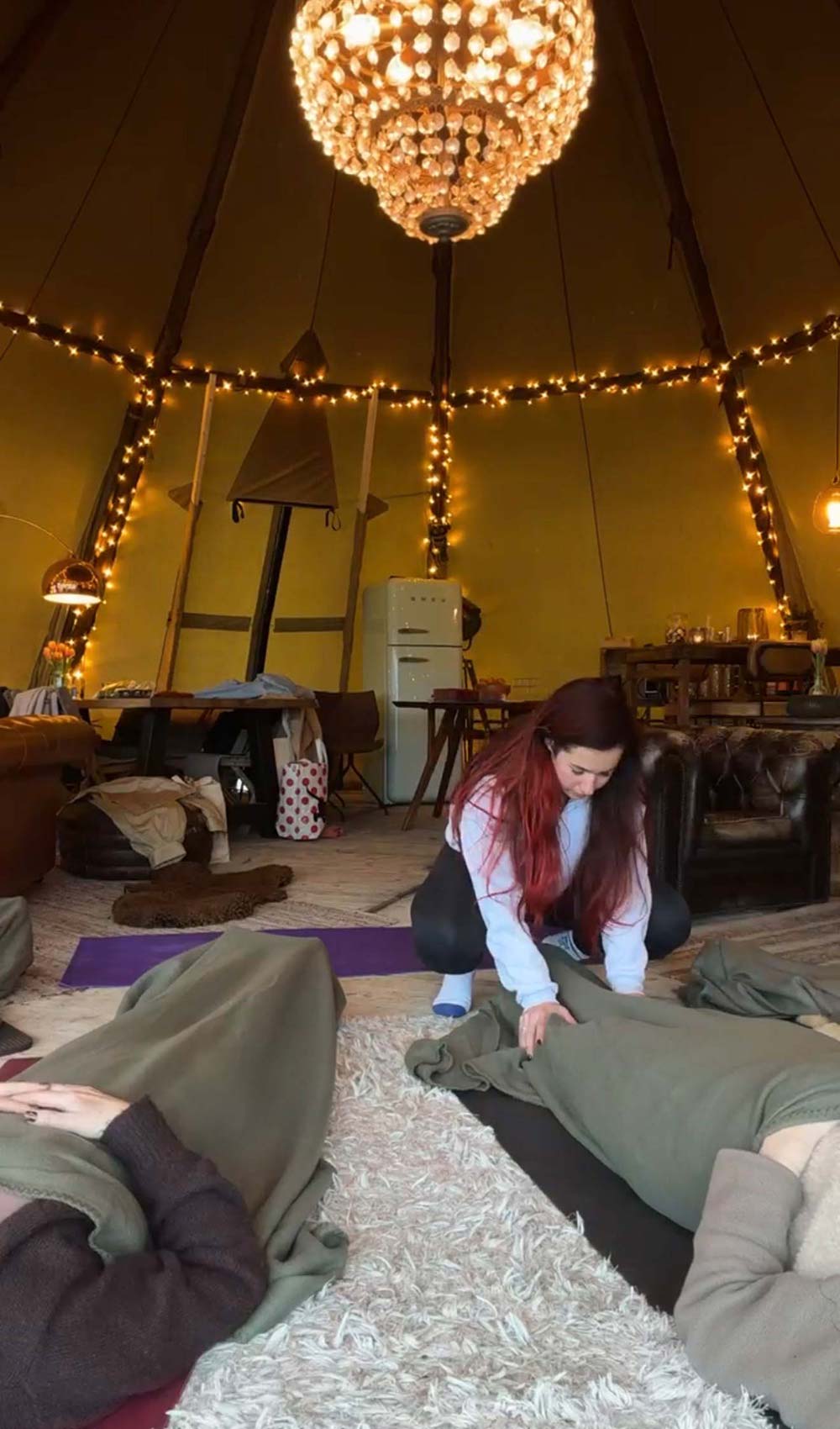 Zondagavond zie ik Merel, Bo, Renee en Eliene bij Eliene in de tipi. Zij heeft met haar man Remie een fantastische plek bij hun huis die ze ook verhuren voor bijvoorbeeld vergaderingen en andere evenementen. Deze avond mochten wij er samen gebruik van maken.