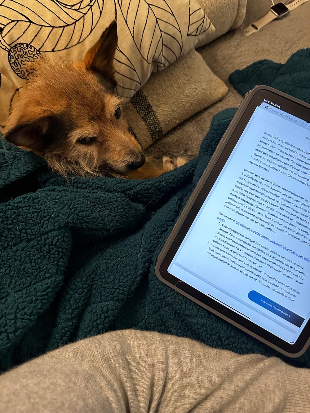 Studeren met Kees tegen me aan. Eind maart doe ik examen voor mijn personal trainer opleiding, dus het begint nu in zicht te komen.