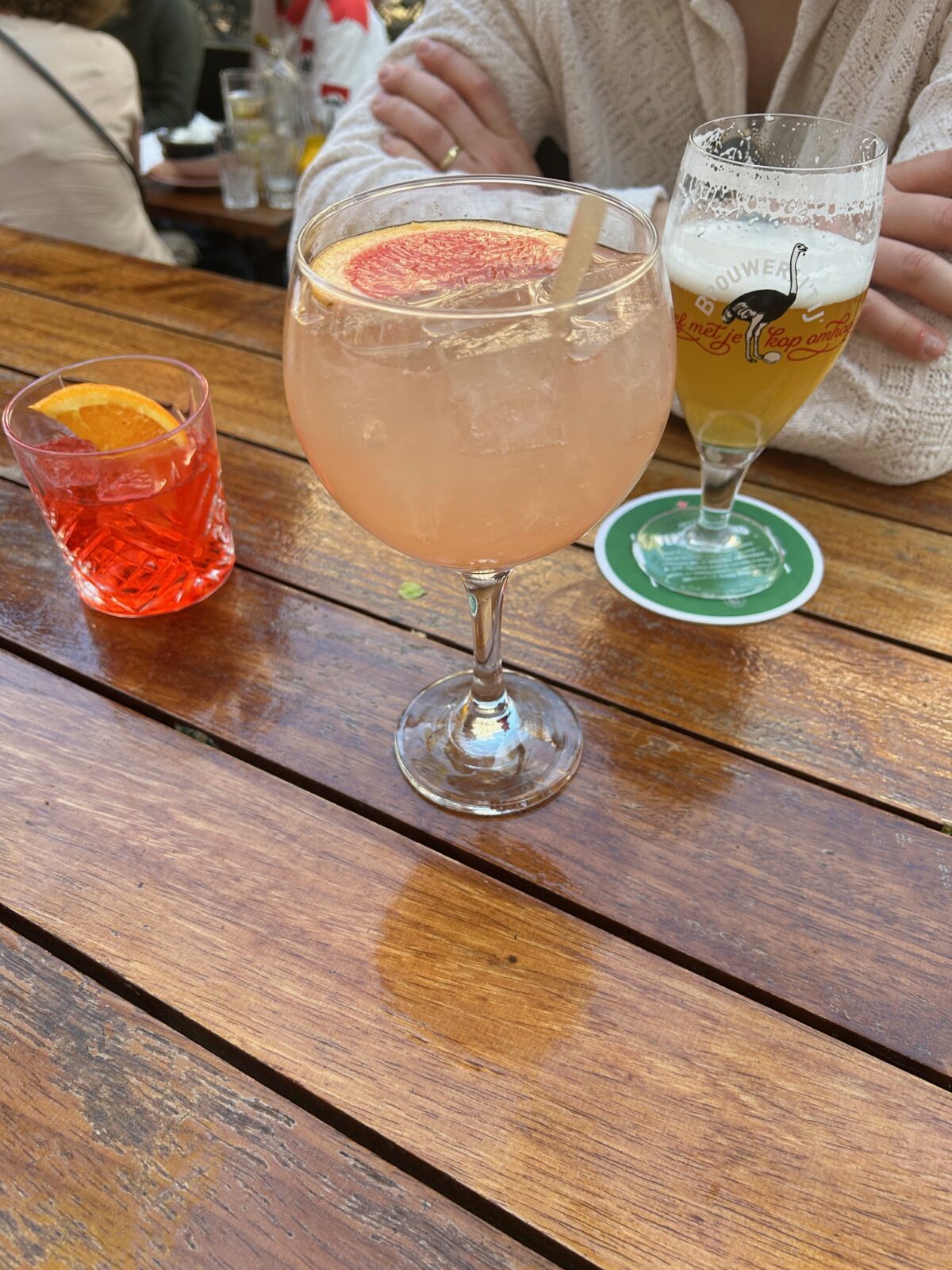 Ik ben niet zo’n zuipschuit maar als we dan zo’n date-day hebben dan vind ik een cocktail in de zon ook wel echt geniaal genieten. Ik nam een paloma, naast een margarita is dat mijn favoriete cocktail. Ik kreeg eerst een verkeerde, die echt onwijs sterk en bitter was. Ik baalde al een beetje maar toen kwam de goede gelukkig aan haha.