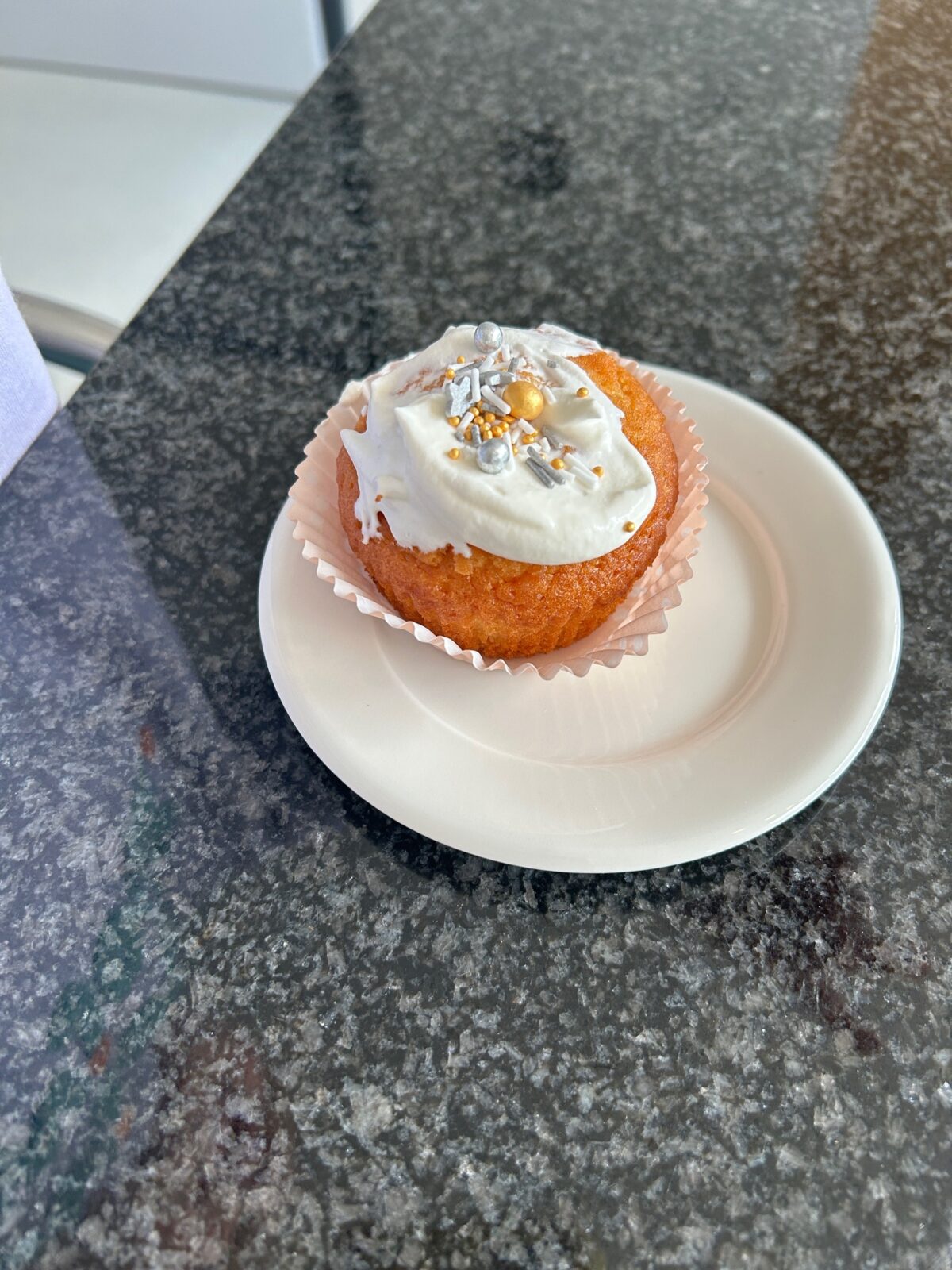 We gingen even langs bij onze buren en de buurvrouw had heel lief wat sprinkeltjes voor Novae klaar gezet zodat ze zelf een cakeje kon versieren.
