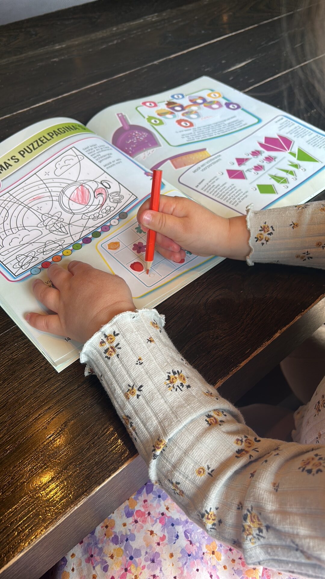 Donderdag vertrokken we richting Antwerpen en onderweg stopten we even bij een Van der Valk om de auto op te laden zodat we de terugweg ook niet meer hoefden. Novae kreeg daar een leuk kleurboekje!