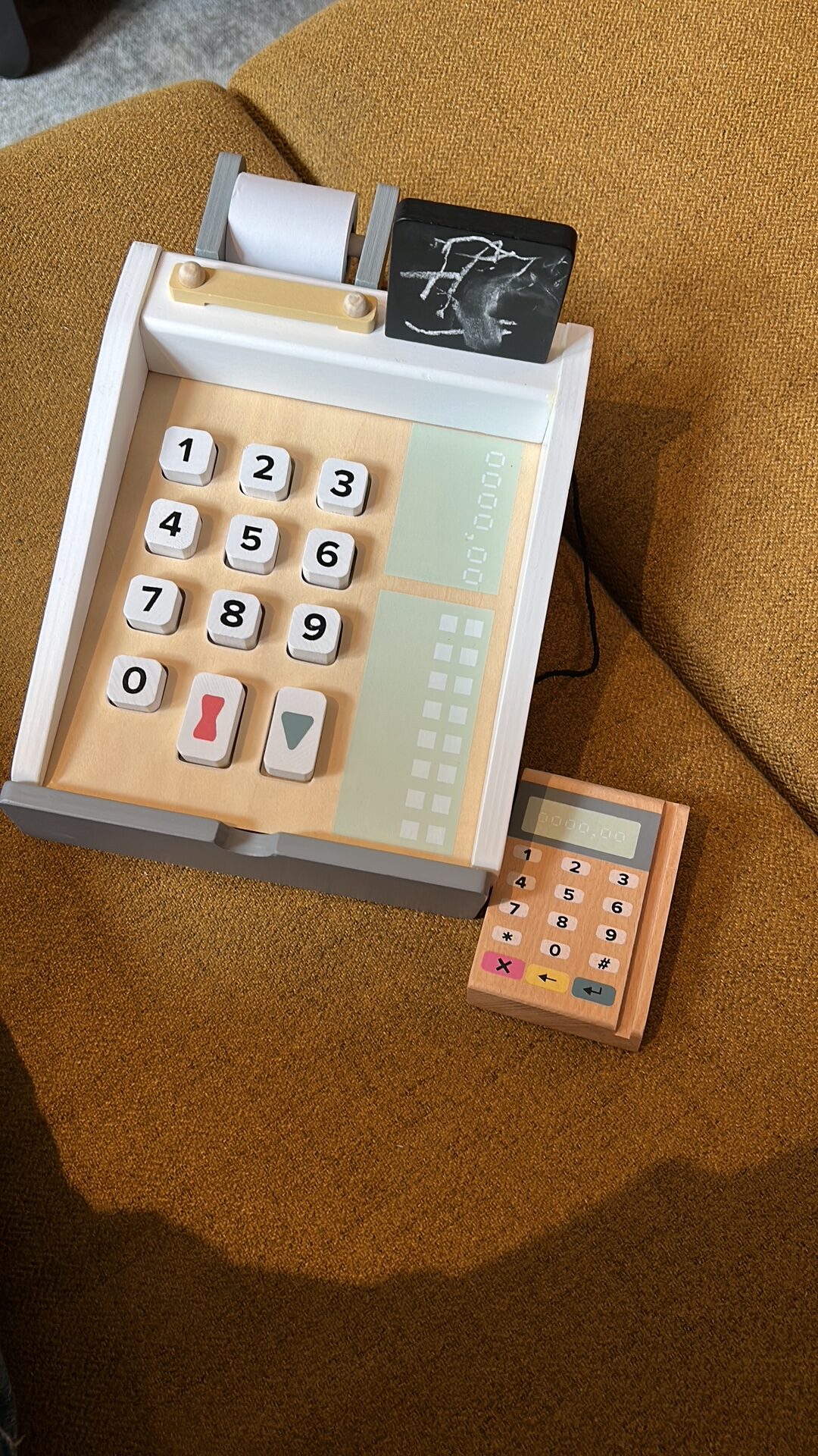 Deze houten kassa zocht ze uit in de speelgoedwinkel. Ze vindt het heel leuk om winkeltje te spelen dus ik wist ook dat ze hier echt wel vaak mee zou gaan spelen.