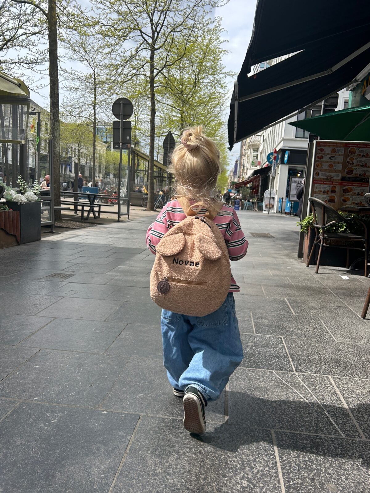 Aan het einde van de middag wilde ze graag haar rugzak om (hier had ik het eten/snacks in gedaan) en ze liep er zo wijs mee door de stad te banjeren, heel zoet.