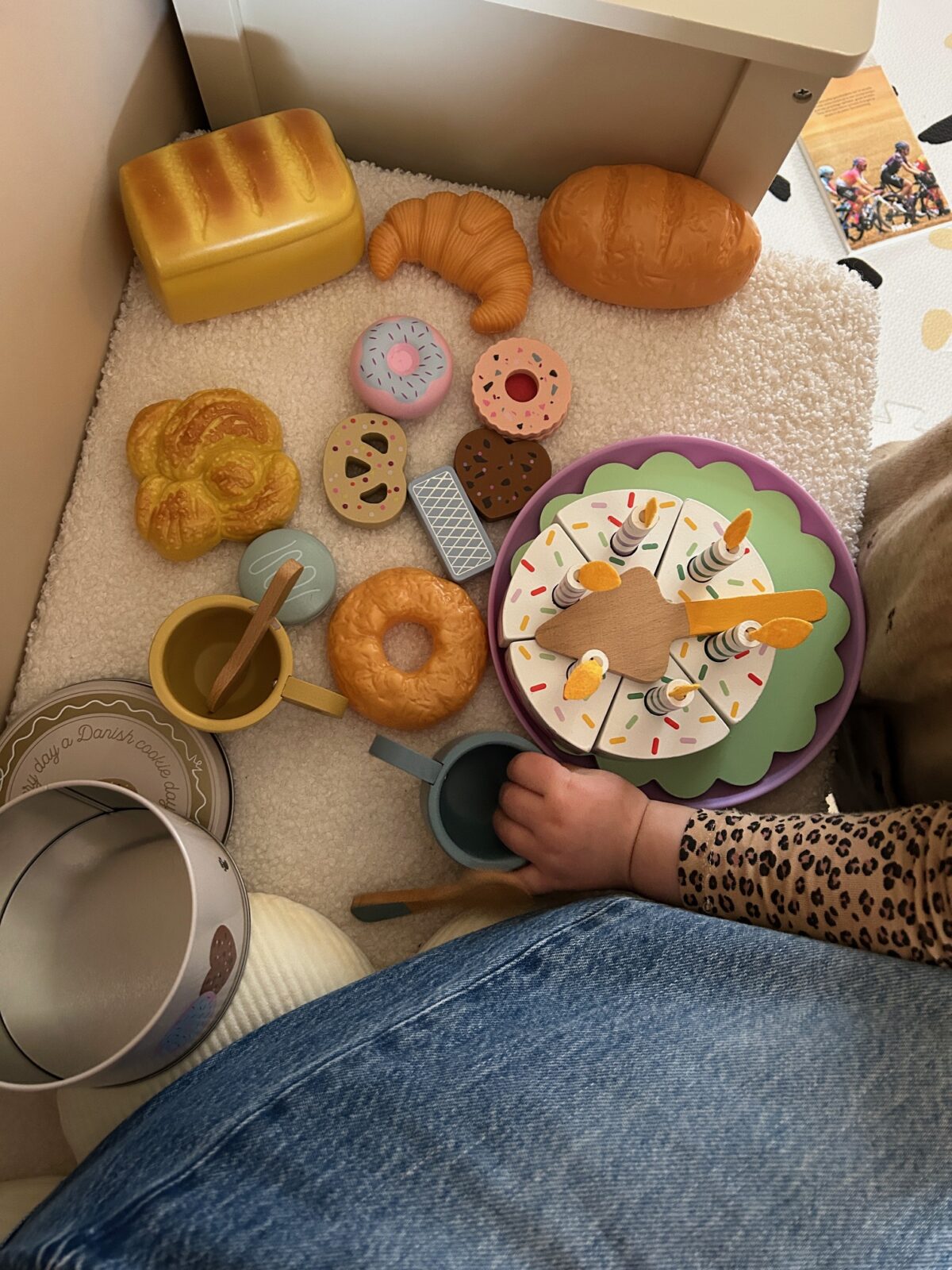 Ik kocht voor Novae bij Flying Tiger een heel schattig blikje met houten koekjes. Speelt ze echt elke dag mee sinds ik het aan haar gaf.