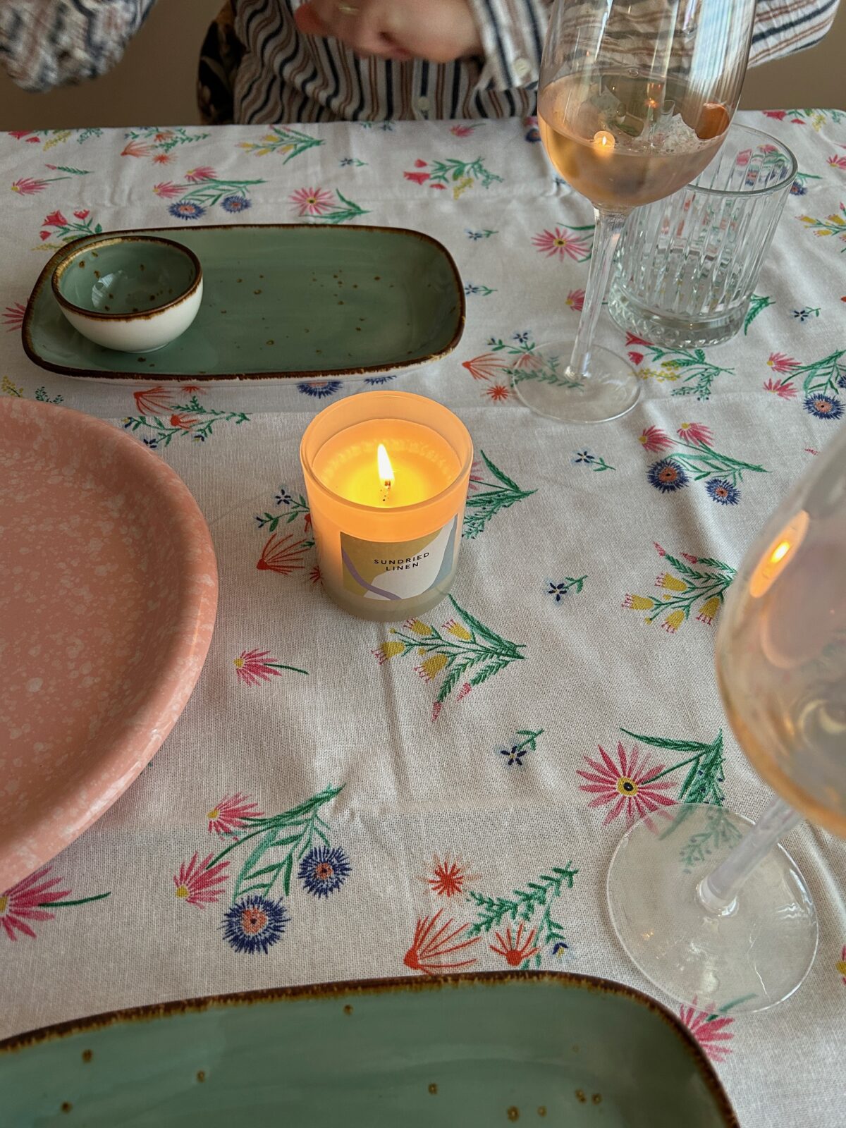 In het weekend besloten we dat we een date-night thuis gingen doen. We hadden niet zoveel puf in het regelen van een oppas en ook niet perse de behoefte om ergens anders te eten. Dus we dekten thuis de tafel, we trokken allebei een leuke outfit aan en bestelden lekker eten.