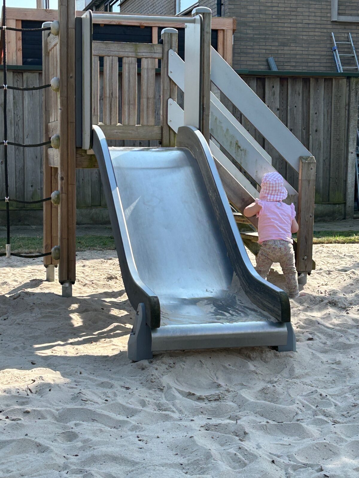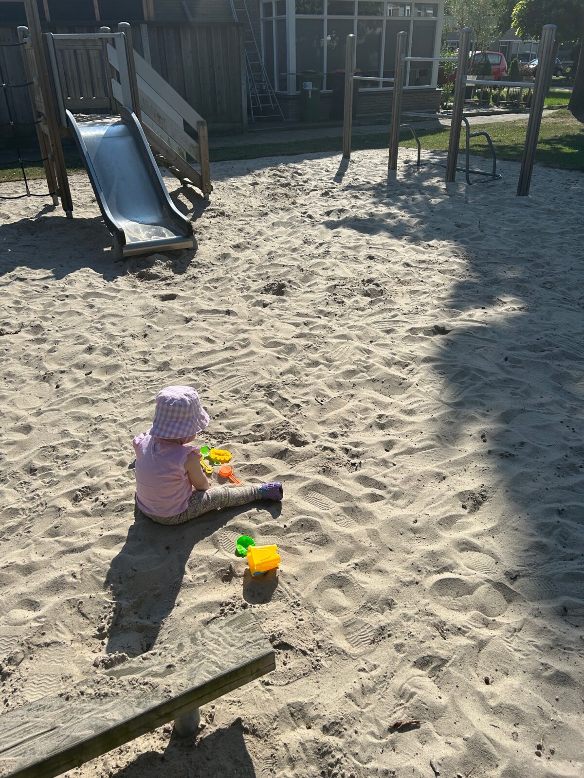 Aan het einde van de middag, toen mijn moeder weg was, ging ik even met Novae naar een speeltuintje hier in de wijk. Ik moet me wel over de goorheid van dit zand heen zetten maar zij vindt het helemaal geweldig dus dat doe ik dan maar gewoon haha.