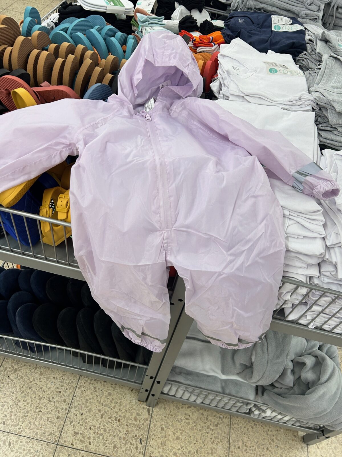 Een dikke tip: Bij Zeeman heb je nu hele fijne buitenspeelpakken. Je hebt deze, een soort overalletje van een dun materiaal. Je hebt ook broekjes met bretels en bijpassende regenjasjes. Heel handig voor de opvang bijvoorbeeld! Bij ons spelen ze het hele jaar door wel buiten, dus dan hebben ze geen natte bibs.