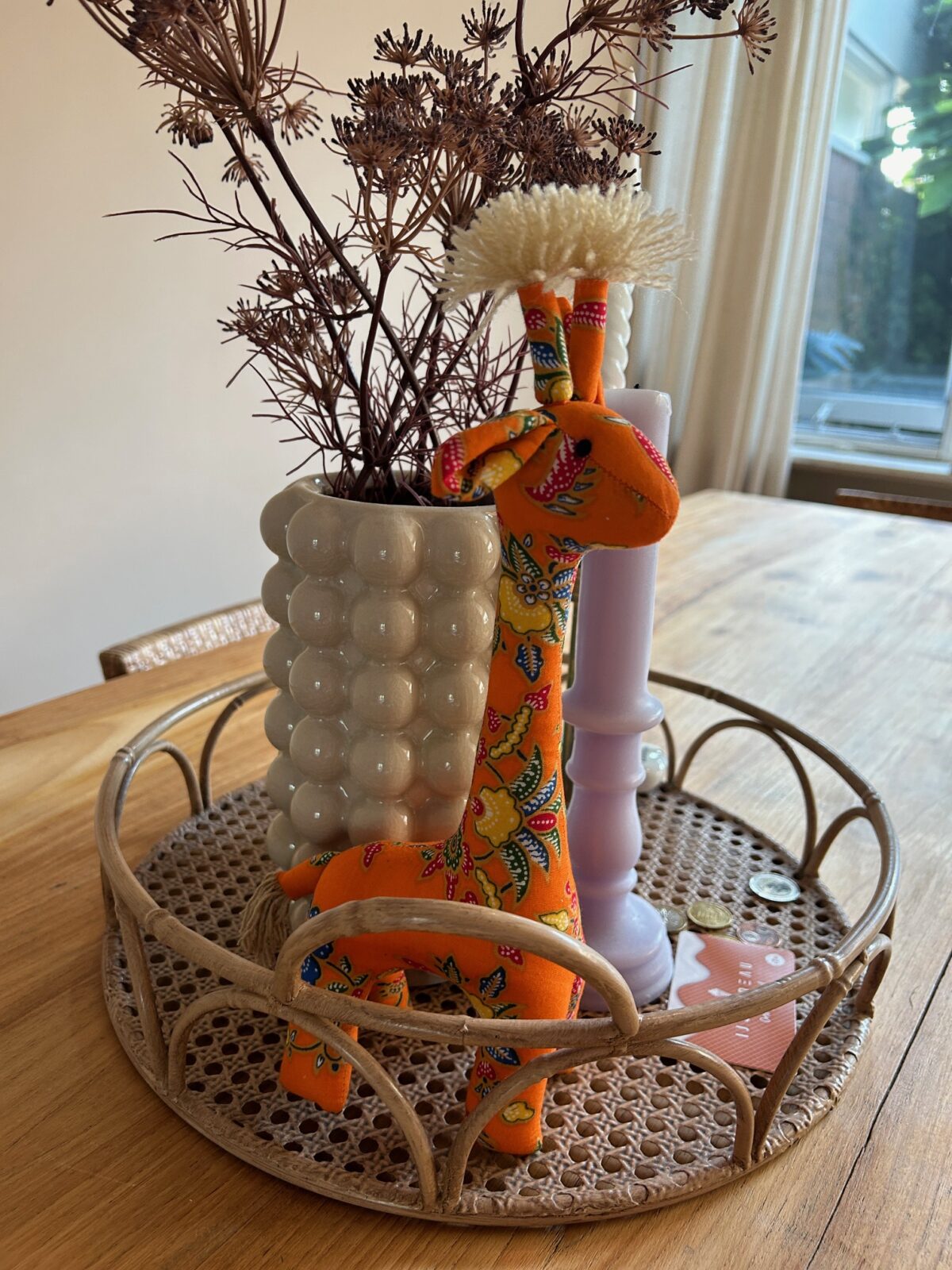 Novae kreeg deze super leuke giraffe uit Bali, waar zij net waren geweest.