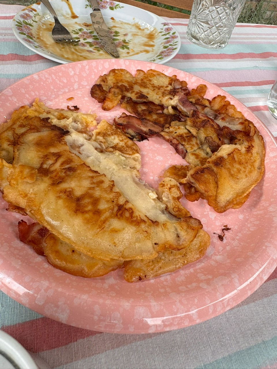 Mijn vader, zus en zwager kwamen pannenkoeken eten. Ik maak altijd verschillende soorten en uiteindelijk ben ik echt wel bijna 1,5 uur aan het bakken. Novae vindt pannenkoeken (met niks erop) echt heel erg lekker en ze probeert het ook te zeggen; ‘ankoe’. Heel cute.