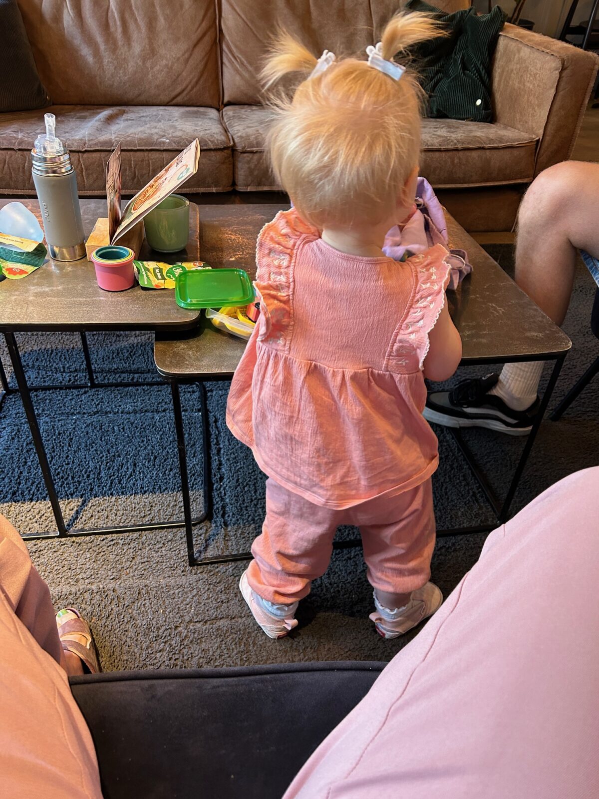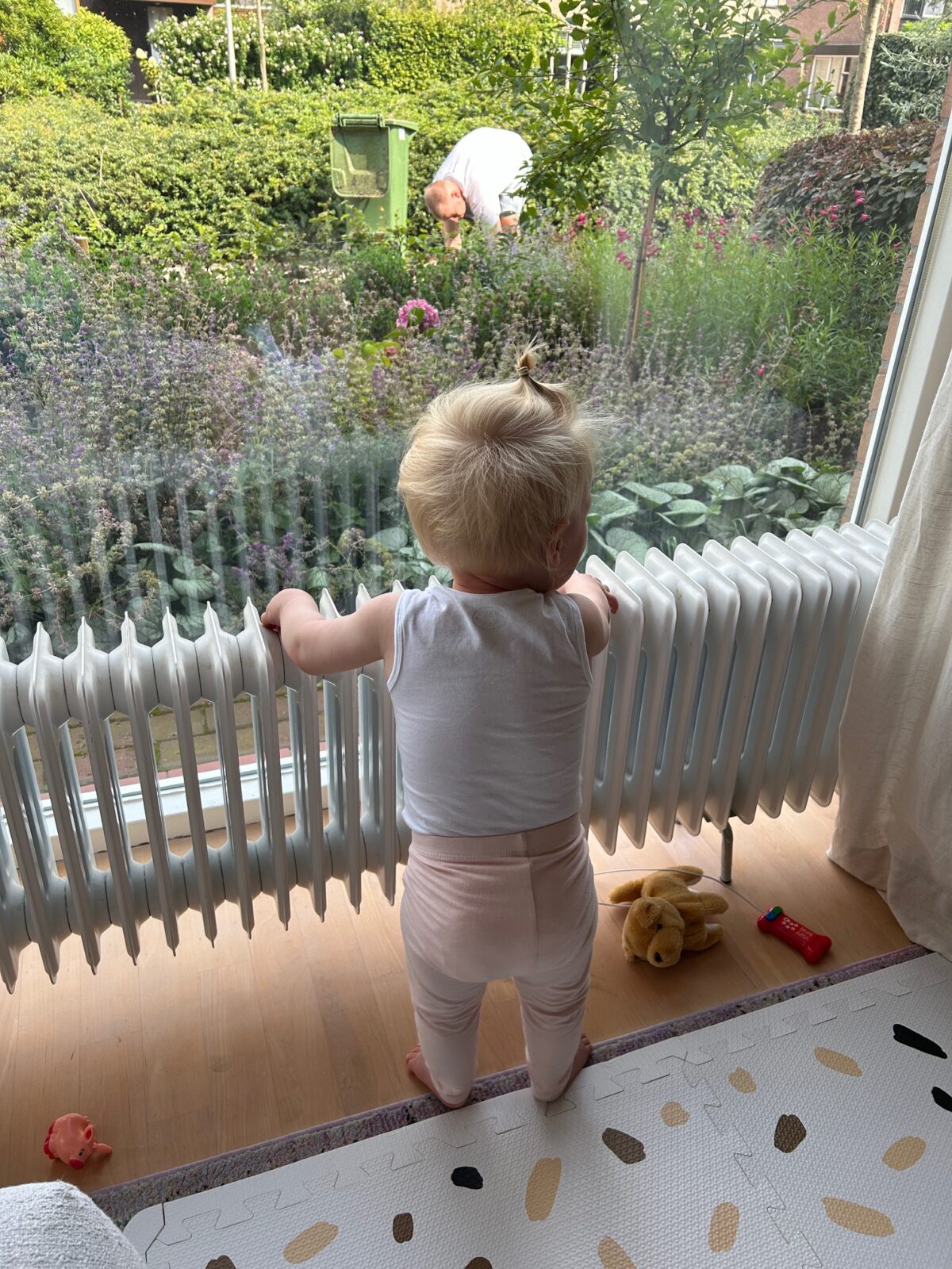Na een intense luier werd dit de outfit voor de rest van de namiddag haha. Ze gaat altijd zo schattig voor het raam staan schreeuwen als Luuk in de (voor)tuin bezig is.