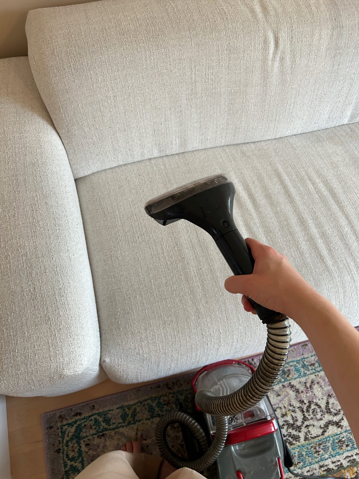 Ik had wat op Instagram geplaatst over mijn fascinatie over de Bissel apparaten die ik overal voorbij zag komen en ik twijfelde om er eentje te kopen. Iemand die bij mij in de wijk woont bood aan dat ik die van haar wel uit mocht proberen. Mega lief! Ik deed de bank en het vloerkleed.