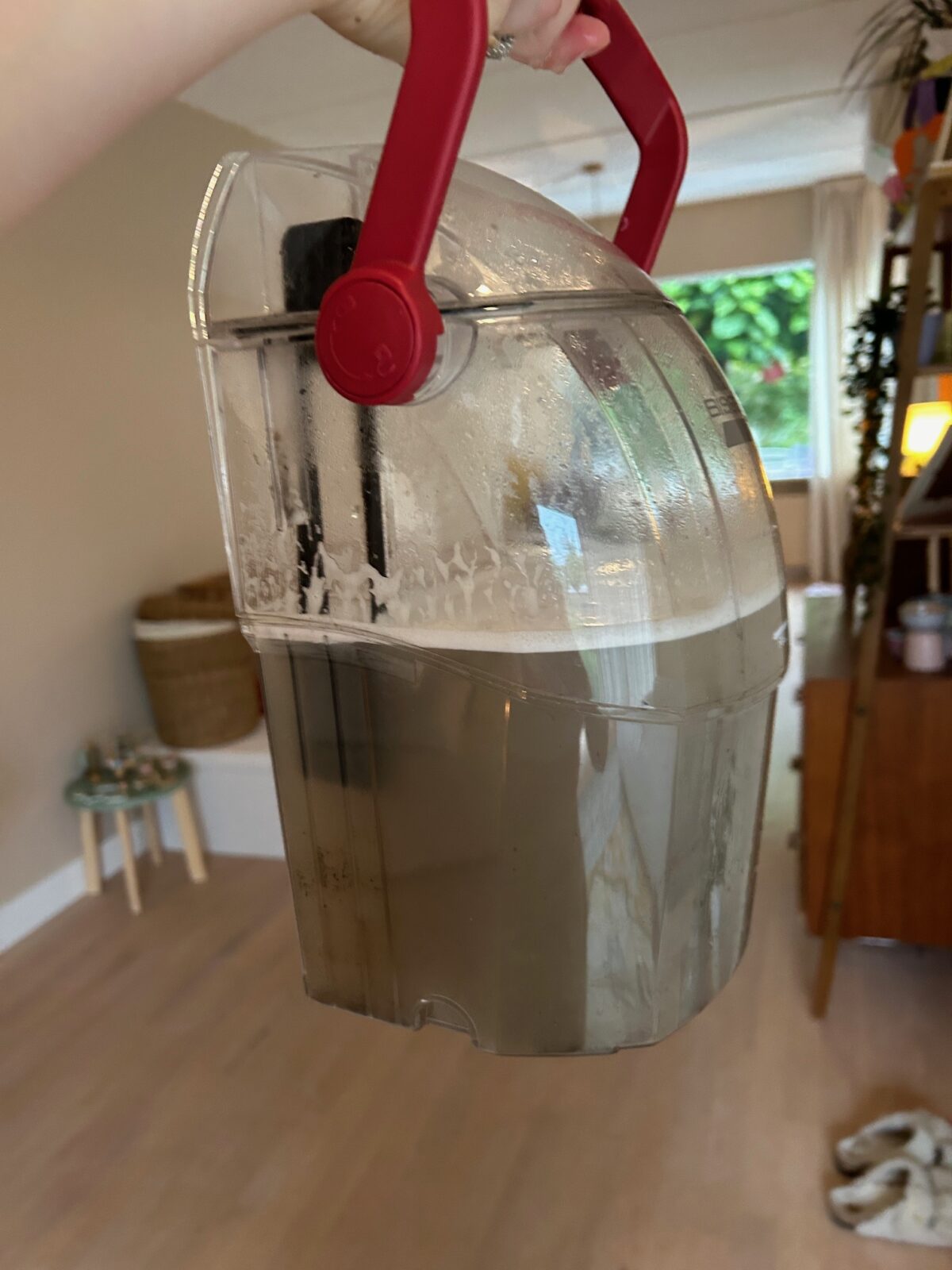 Dit kwam er van de bank. Ernstig, maar normaal als ik de rest op Instagram zo bekijk. Toch een fijn idee dat het nu weer even gedaan is, maar ik ga er niet eentje zelf kopen. Ik ga het namelijk niet heel vaak doen, want je moet echt wel even plannen dat je bank een beste periode nat is. Bij ons duurde het zo’n 36 uur denk ik. Misschien heb ik ook wat riant water gebruikt haha. Als ik het nog eens ga doen, dan huur ik er eentje. Dat kan tegenwoordig ook bij bijna elke bouwmarkt heb ik mij laten vertellen.
