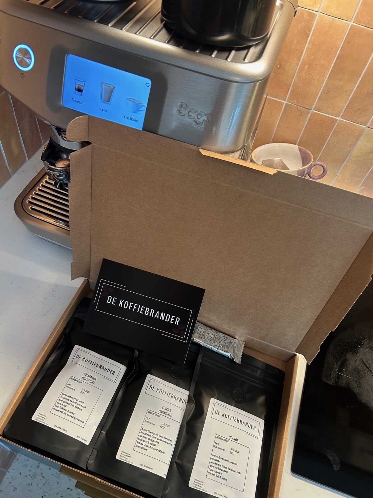 Ik mocht van De Koffiebrander in Hengelo die smaken testen! Ik ben daar nog niet aan toe gekomen want we hadden net een kilozak open. Maar, inmiddels is dat bijna op en kan ik dit eens gaan proberen. Ik vind het vet leuk dat het een Hengelo’s bedrijf is en ik vind in ieder geval de prijzen heel schappelijk. Als het lekker is dan laat ik het je zeker weten.