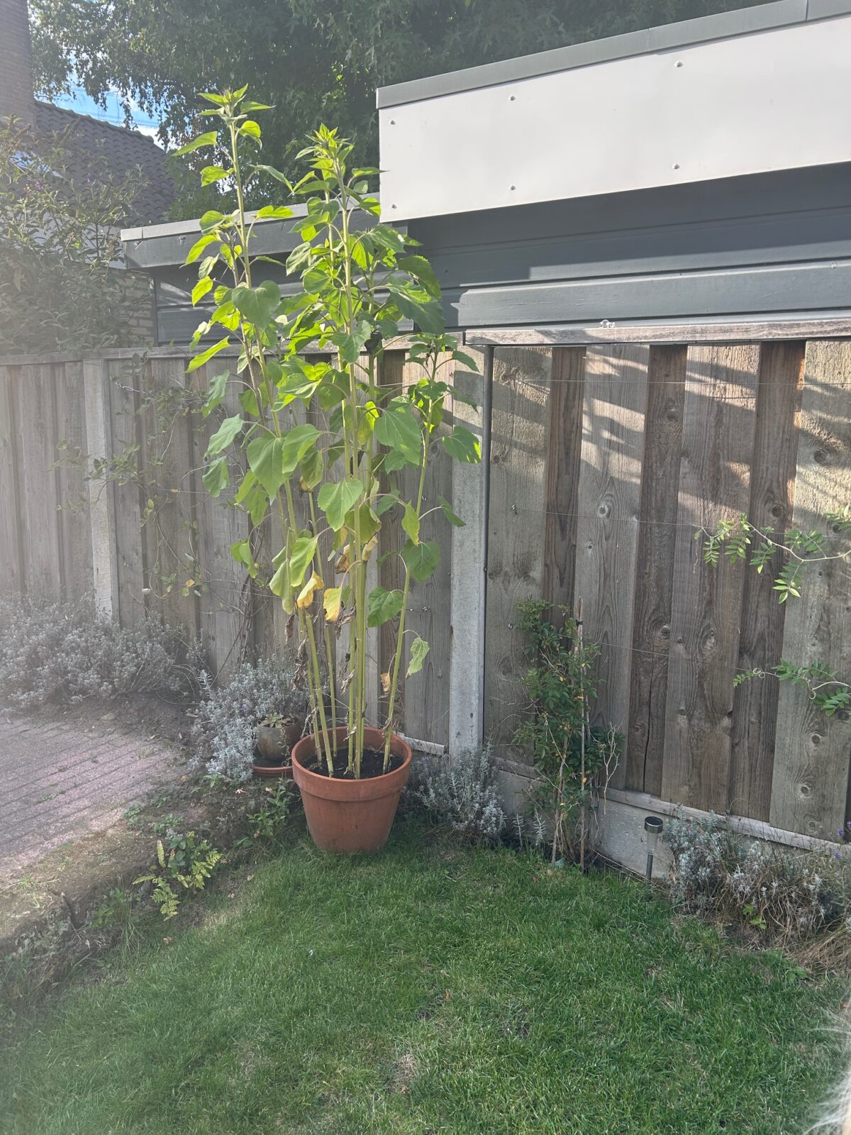 Dit moeten nog zonnebloemen worden. We hebben ze een beetje laat geplant, maar volgens mij gaan ze nog wel uitkomen!