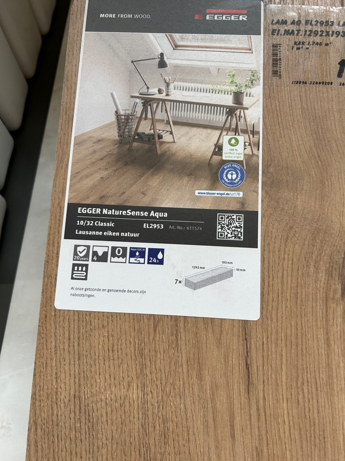 De zoektocht naar het laminaat dat wij op de bovenverdieping hebben liggen. We gaan binnenkort op zolder verbouwen en dan moet de hele vloer eruit. Ik vind het toch wel het mooist als we dezelfde vloer weer kunnen vinden, zodat het op beide bovenverdiepingen hetzelfde is. Volgens mij was het deze, maar we moeten even kijken met een stuk van de huidige vloer erbij. Anders wordt het maar bij benadering! We hebben op de bovenverdieping laminaat en dat is prima voor ons. We lopen daar niet met schoenen en deze van Bauhaus is ook erg dik. Hij bevalt ons goed!