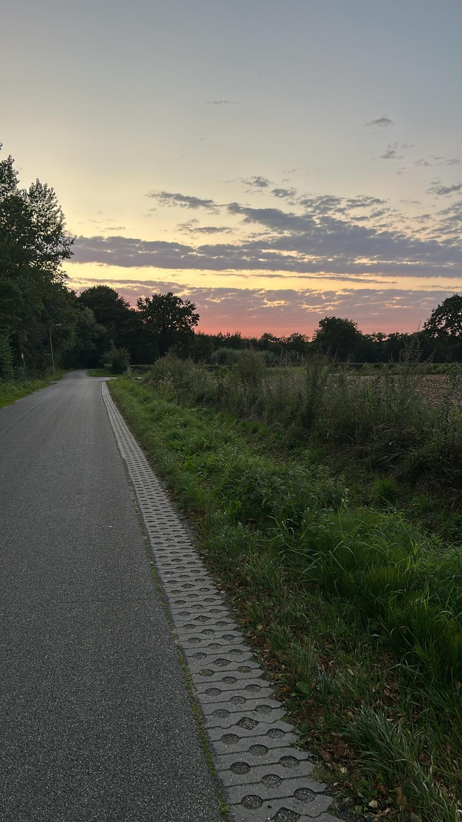 De avondwandelingetjes moeten zich gaan verplaatsen naar drukkere straten nu het wat donkerder wordt. Helaas. Maar, deze zonsondergang was echt prachtig. Het komt nooit echt over op beeld hè?