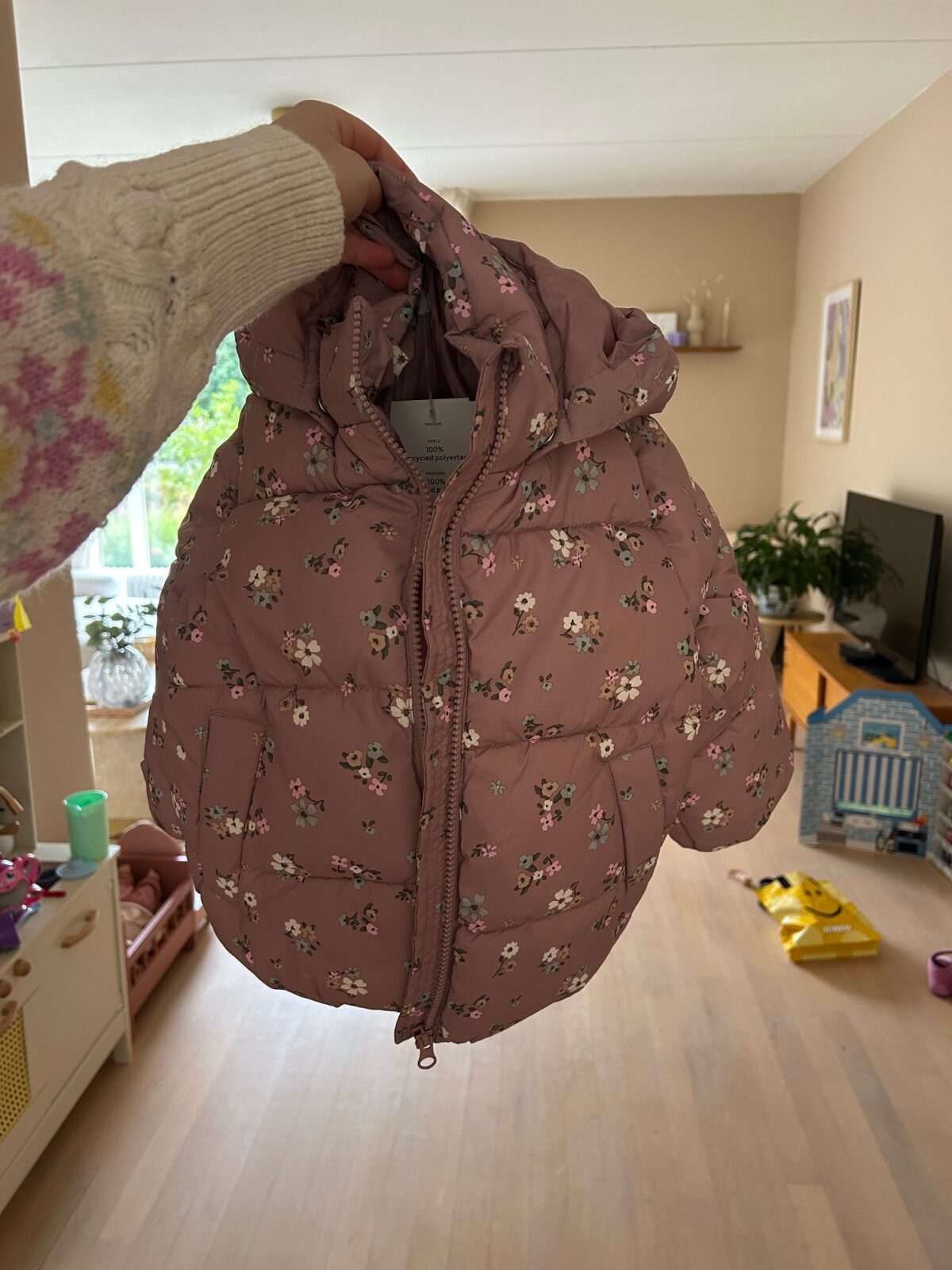 Ik kocht de winterjas van Novae weer bij H&M dit jaar. Dit model had ze vorig jaar ook en beviel heel goed. Lekker dik, het heeft een rits i.p.v. knopen en de muts kan er ook af. Bovendien vind ik de kleur en print cute! Hij is er ook in het beige met kersjes, ook erg lief. Je vindt ‘m hier.