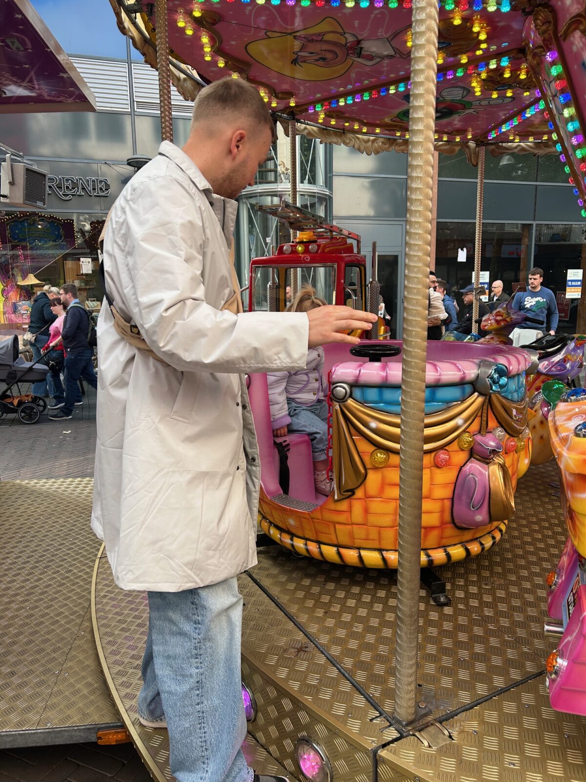 Er staat in Enschede altijd een draaimolen op de markt op zaterdag. We lopen er altijd langs en kijken is dan leuk, maar ze hoefde er nooit perse in. De ene keer dat ze ooit in een draaimolen ging moest ze huilen haha, ze houdt gewoon niet zo van wilde dingen (heel wild hè). Dit keer was de wens ineens heel groot en dat mocht van ons. Luuk moest er wel bij blijven, de held, maar ze vond het voor het eerst echt leuk!