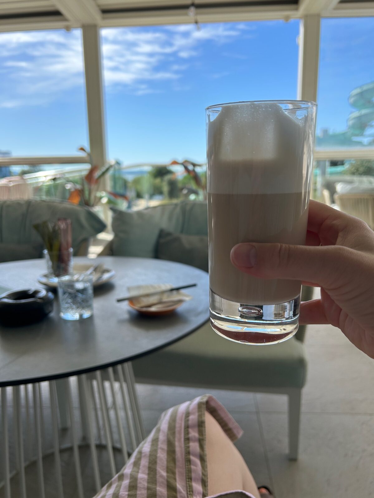 Novae en Luuk hadden hun eetlust nog niet terug, bij mij begon er langzaam zin te komen in koffie. Een latte serveren ze hier met een rietje, heel bijzonder.