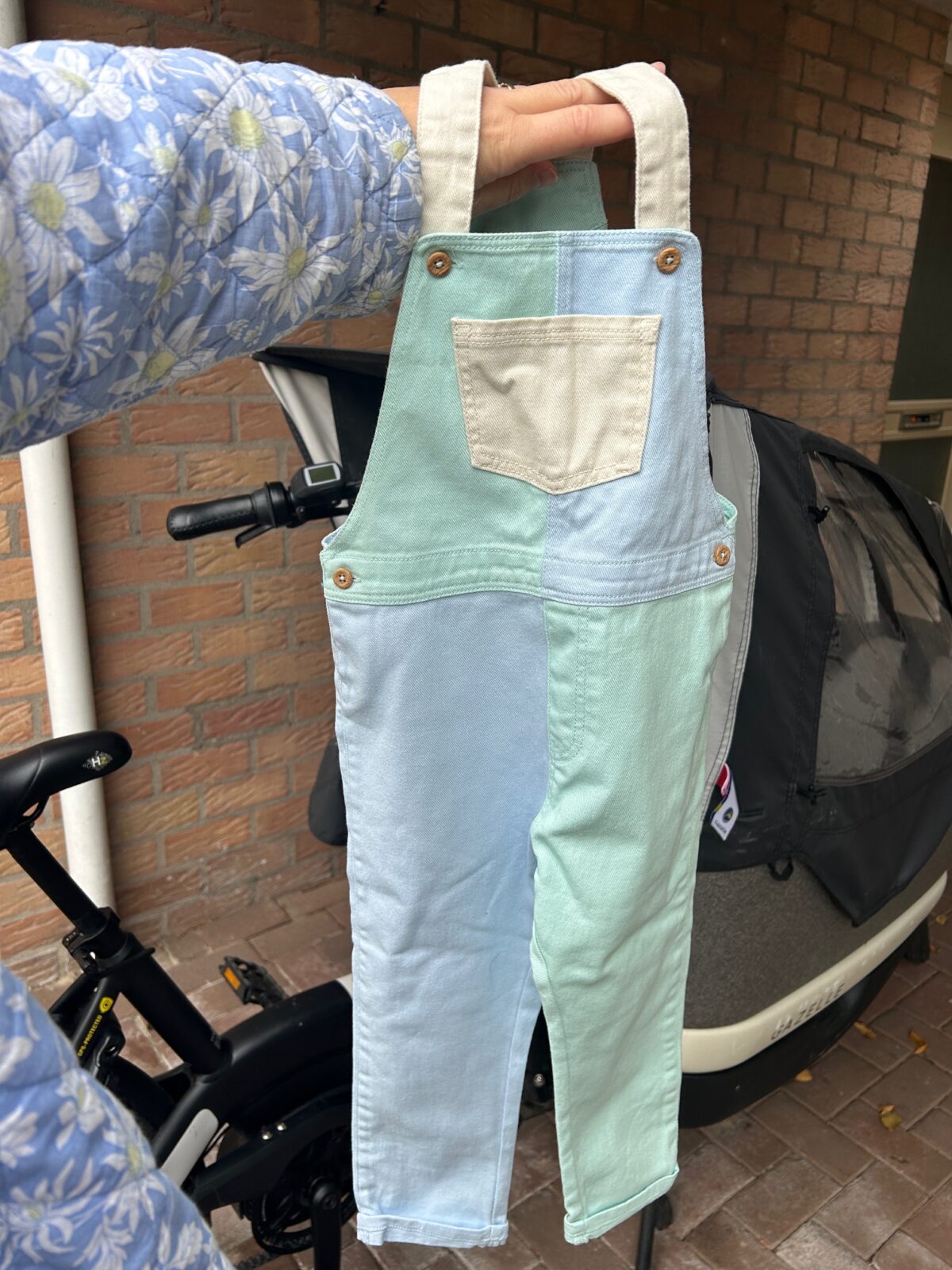 Bij thuiskomst lag ook een pakketje van Vinted klaar met deze leuke tuinbroek voor Noof.