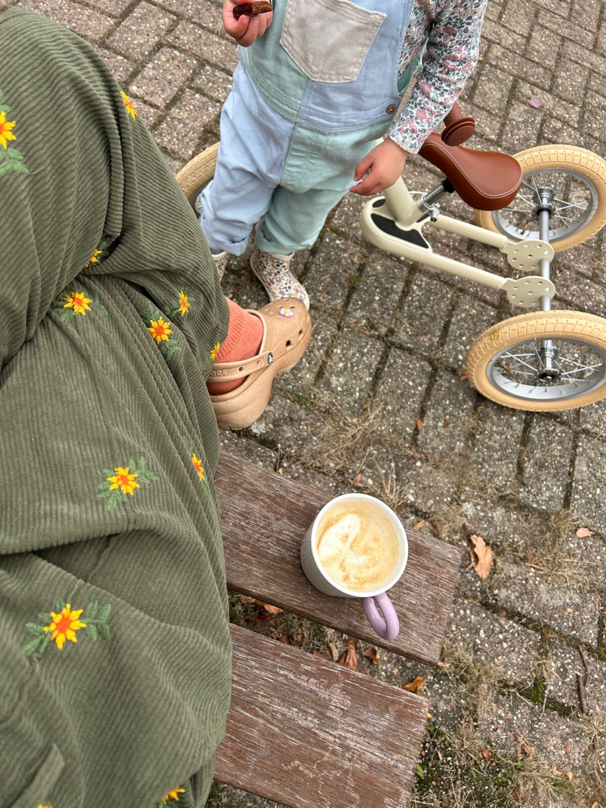Het is op zondag nog warm genoeg om zonder jas buiten op het pleintje even koffie te drinken en te luisteren naar Novae’s liedjes die ze op de bult voor ons huis zingt. Kon ik mijn kopje koffie opdrinken zonder op te staan? Nee joh. What was I thinking haha.
