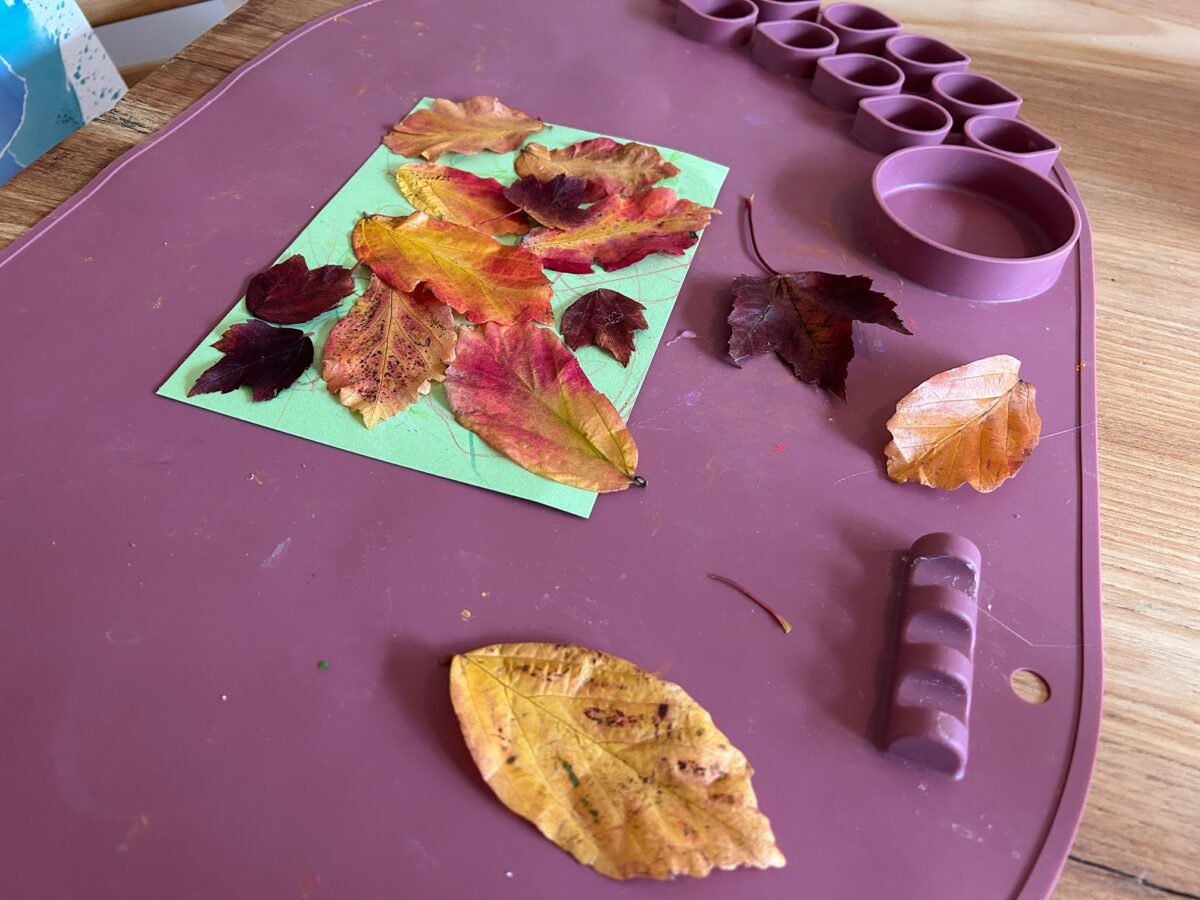 Ook zochten we de mooiste blaadjes van de grond en maakten we een blaadjes schilderij voor de buurtjes, waar we daarna even een kopje thee gingen drinken.