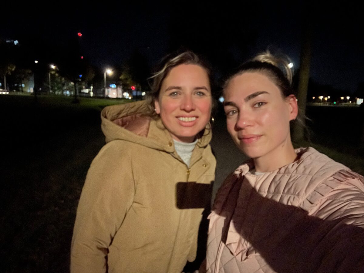 Even een avondwandelingetje met vriendin Neelke. Lekker met de blote snoet in het flatteuze licht van een lantarenpaal. The things I do voor deze blog 😉