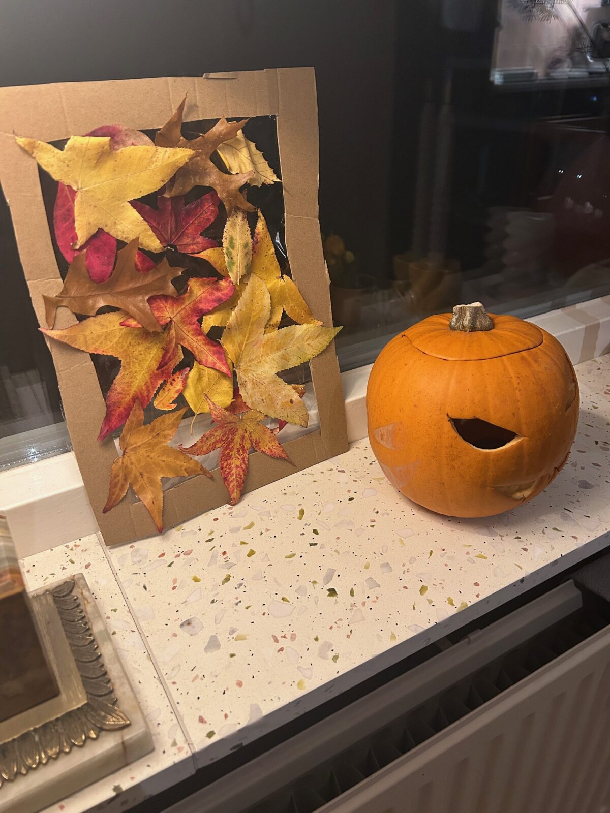 Samen met het blaadjesschilderij maakte het een mooi herfsttafereeltje.