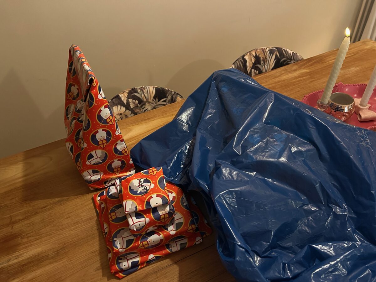 Omdat we deze week gaan verhuizen naar het vakantiehuisje pakte ik de sinterklaascadeautjes al in. Dat ligt mooi klaar achterin de kast daar, dan hoef ik daar in ieder geval niet meer over na te denken.