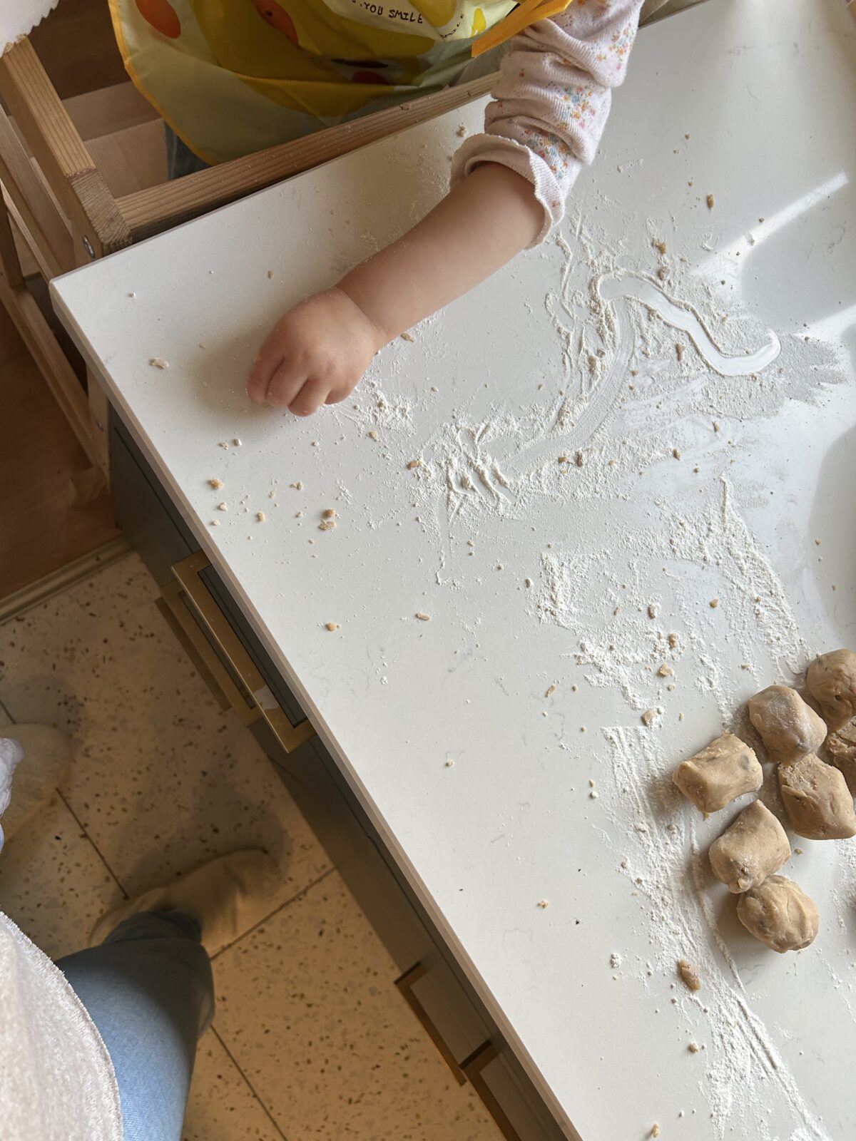 We bakten ook koekjes voor een buurvrouw die slecht nieuws had gekregen. Novae sneed het deeg met haar nieuwe mes in stukken en at alle kruimels op.