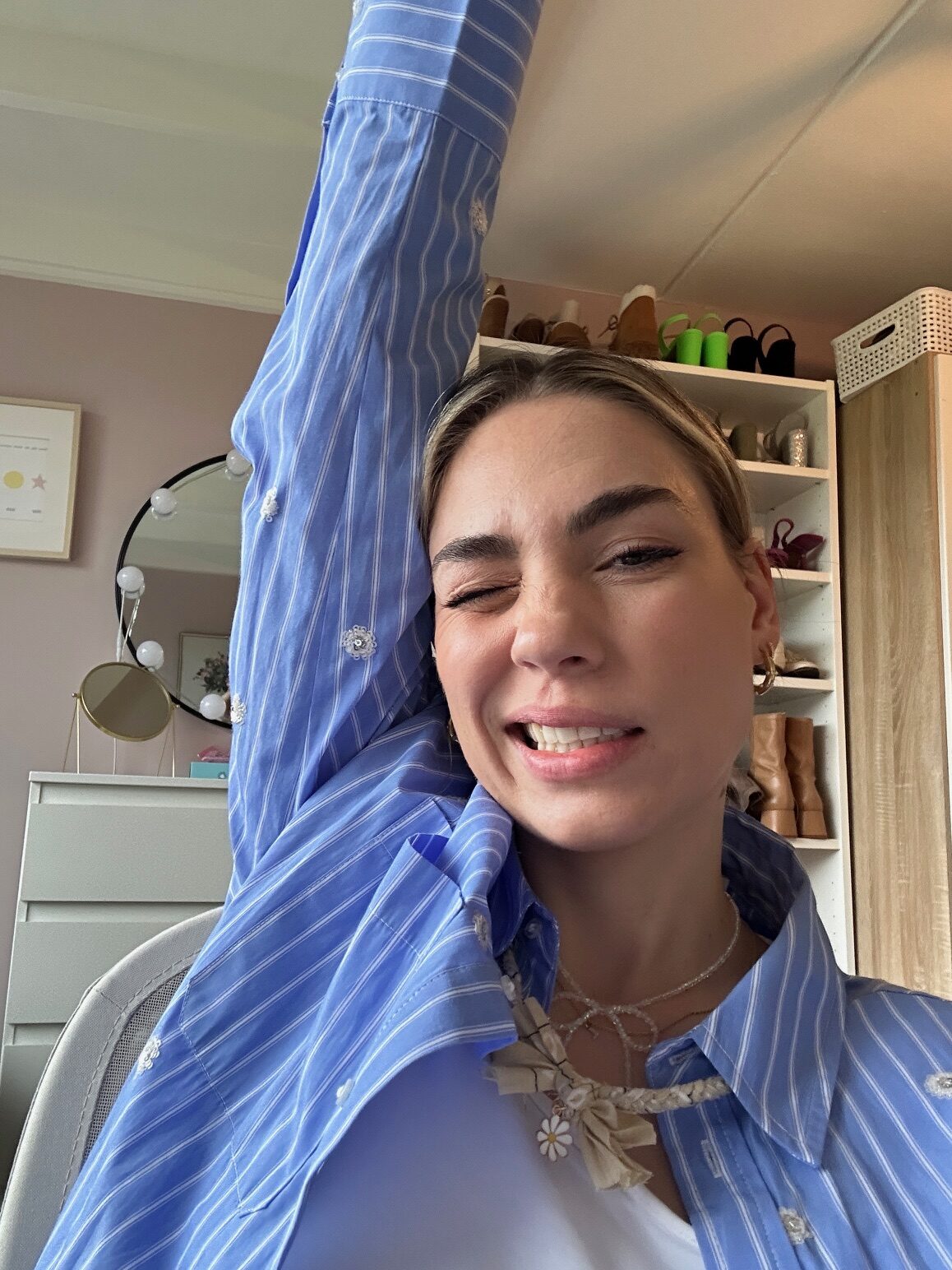 Hier zie je mijn oog al langzaam wat aftakelen naar ellende. Ik dacht dat het griepje al wel een beetje aan het overwaaien was na een paar gammele dagen maar hij begon nu eigenlijk pas haha. Uiteindelijk kreeg ik twee ontzettend ontstoken, rode, dikke ogen. Ik moet wel zeggen, ik ben echt iemand die normaal op de bres springt dat je gewoon rust moet pakken als je ziek bent maar ik ben dit keer gewoon door gegaan. Ik had er gewoon geen. zin. in. Ik wilde een leuk weekend dus ik heb het gewoon genegeerd. Soort van.