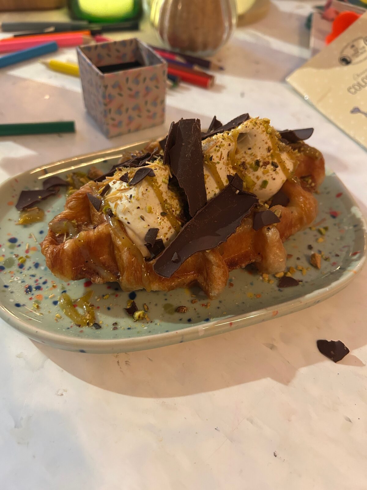 Ik nam ook de Croffle. Een wafel gemaakt van een croissant. OOK heerlijk. Zo wil ik elke dag wel beginnen natuurlijk.