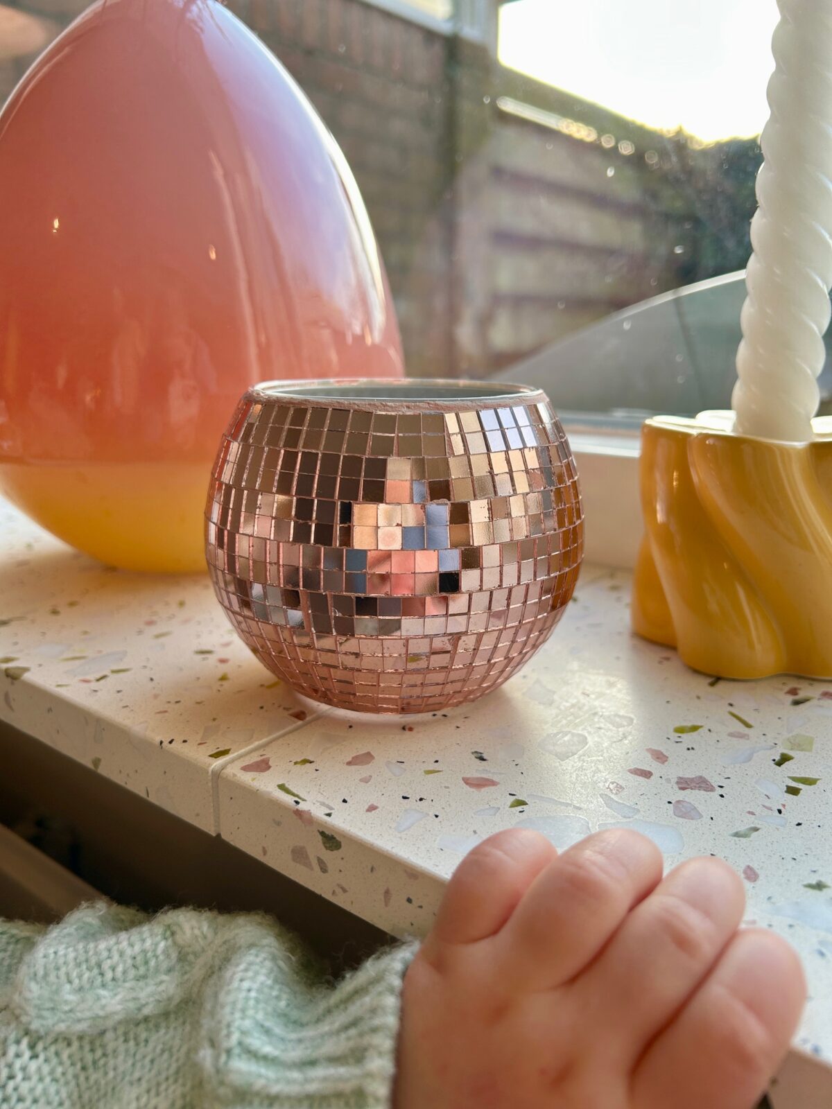 Wel vond ik een leuke vaas, een discoballen houdertje voor kaarsjes of plantje en die gele kandelaar had ik onlangs bij H&M Home al gescoord. Leuke match!