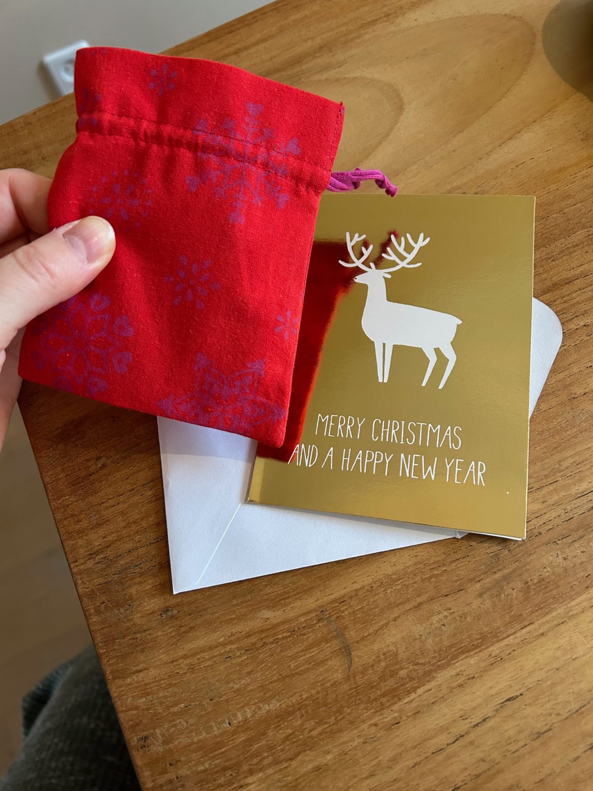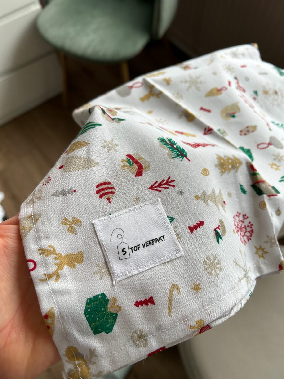 Deze stof kun je dan om een cadeautje wikkelen. Super leuk als iedereen gewoon een paar van die lappen zou hebben, want dan blijft het constant in roulatie.